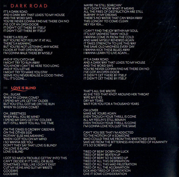 Media Condition : Very Good Plus (VG+) Sleeve Condition : Very Good (VG) UPC : Genre : Rock, Pop Style : Ballad, Pop Rock, Soft Rock Notes : Unopened item may come with a brown hype sticker. Track List : 1. Dark Road 3:47 2. Love Is Blind 4:18 3. Smithereens 5:17 4. Ghosts In My Machine 3:30 5. Womankind 4:28 6. Through The Glass Darkly 3:29 7. Lost 3:41 8. Coloured Bedspread 4:31 9. Sing 4:48 10. Big Sky 4:02 11. Fingernail Moon 5:04 Barcode and Other Identifiers : Barcode 8 8697-15260-2 8 Matrix / Runout 88697152602RE2 [\'Sonopress Arvato\' logo] + A05 + GN05901 Mastering SID Code IFPI L028 Mould SID Code IFPI 10J9 Matrix / Runout 88697152602RE2 [\'Sonopress Arvato\' logo] + A12 + GN05901 Mastering SID Code IFPI L028 Mould SID Code IFPI 10M0 Matrix / Runout 88697152602RE2 [\'Sonopress Arvato\' logo] + A07 + GN05901 Mastering SID Code IFPI L028 Mould SID Code IFPI 10K1 Matrix / Runout 88697152602RE2 [\'Sonopress Arvato\' logo] + A13 + GN05901 Mastering SID Code IFPI L028 Mould SID Code IFPI 10J4 Phonographic Copyright (p) Sony BMG Music Entertainment Copyright (c) Sony BMG Music Entertainment Manufactured By Arista Records LLC Distributed By Arista Records LLC Mastered At Sterling Sound Mixed At South Beach Studios Recorded At The High Window Recorded At Westlake Studios Glass Mastered At Sonopress Arvato, USA Pressed By Sonopress Arvato, USA