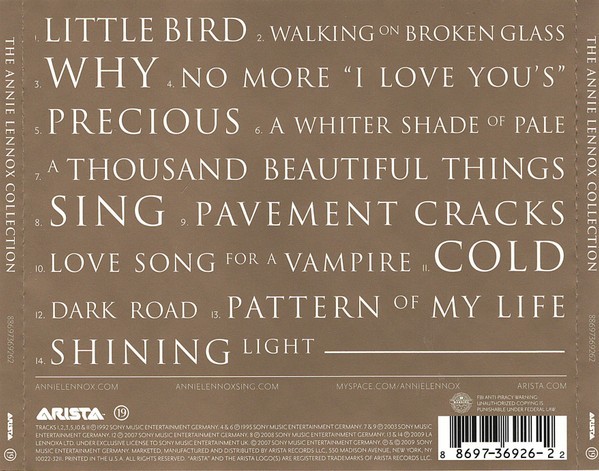 Media Condition : Mint (M) Sleeve Condition : Mint (M) factory sealed Track List : 1. Little Bird 4:49 2. Walking On Broken Glass 4:11 3. Why 4:53 4. No More "I Love You's" 4:52 5. Precious 4:16 6. A Whiter Shade Of Pale 5:19 7. A Thousand Beautiful Things 3:06 8. Sing 4:20 9. Pavement Cracks 5:10 10. Love Song For A Vampire 4:19 11. Cold 4:29 12. Dark Road 3:47 13. Pattern Of My Life 4:19 14. Shining Light 4:20 Barcode and Other Identifiers : Barcode 8 8697-36926-2 2 Mastering SID Code IFPI L028 Mould SID Code IFPI 10F0 Matrix / Runout 88697369262 [Arvato Digital Services logo] + + HV54601 Pressed By Arvato Digital Services Bertelsmann, USA