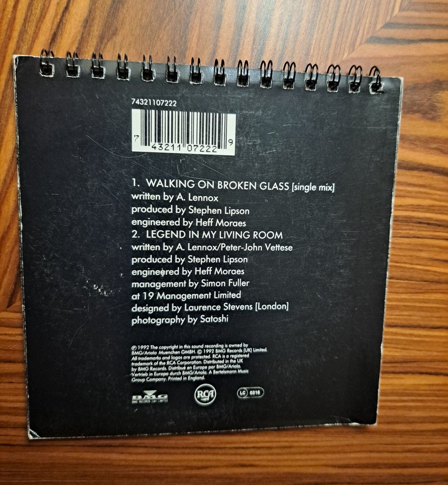 Annie Lennox's rare 1992 flipcard sleeve single "Walking On Broken Glass" is a collector's dream. Including the single mix of the hit single, along with Bside "Legend In My Living Room", it features a very good plus (VG+) CD grading. This special edition release on RCA showcases the iconic artist's studio recording in the genres of pop, rock, and R&B & soul. With fair to good inlay and case conditions (please see photos for details), and featuring outstanding photos of the Rock and Soul legend, this limited edition CD is a must-have for fans of Annie Lennox and 1990s music.