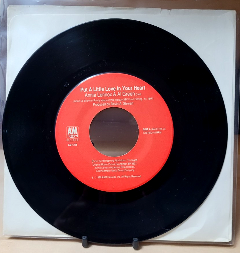 Annie Lennox/Al Green: Put A Little Love In Your Heart 1988 A&M (AM1255) - 7" Vinyl *Tested* Track Listing: A. Put A Little Love In Your Heart B. A Great Big Piece Of Love Manufacture sleeve &vinyl are in very good condition, please see pictures for more details. Vinyl has been playtested, cleaned and vinyl will be shipped with clear protection sleeve.