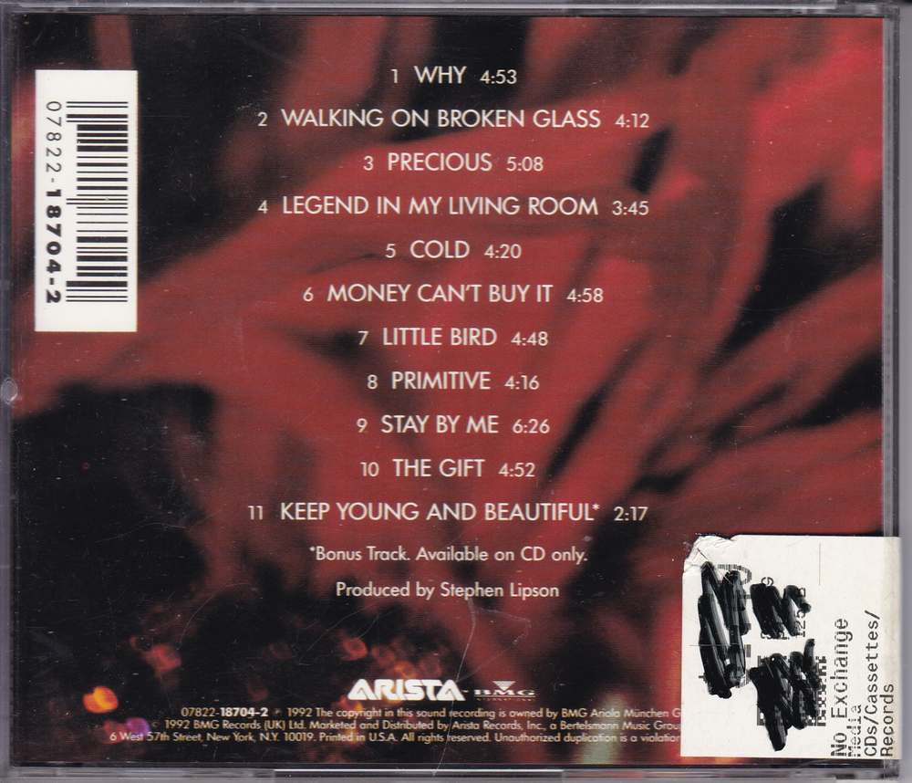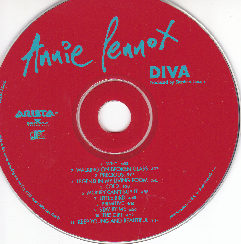 The product is a CD titled "Annie Lenox - Diva" by the artist Annie Lennox. Released under the record label Arista, this CD is the first edition and falls within the genre of rock music. With Annie Lennox known for her powerful vocals and impactful lyrics, this album is likely to showcase her talents as a solo artist, making it a must-have for fans of her work. Get ready to immerse yourself in her unique sound and enjoy the tracks featured on this iconic album. Disk and jewel box are pristine - all artwork is intact