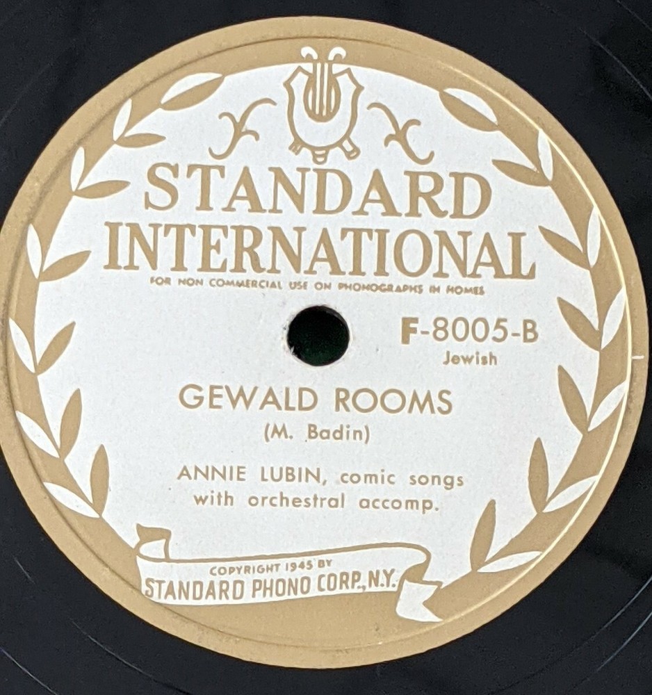 Annie Lubin - Yontif / Gewald Rooms Comedy Songs W/ Orchestra Jewish 10" 78 RPM Record. VG+ Condition. Generic Archival Quality Inner and Outer Sleeve. 1940's. Shipped with USPS Media Mail.