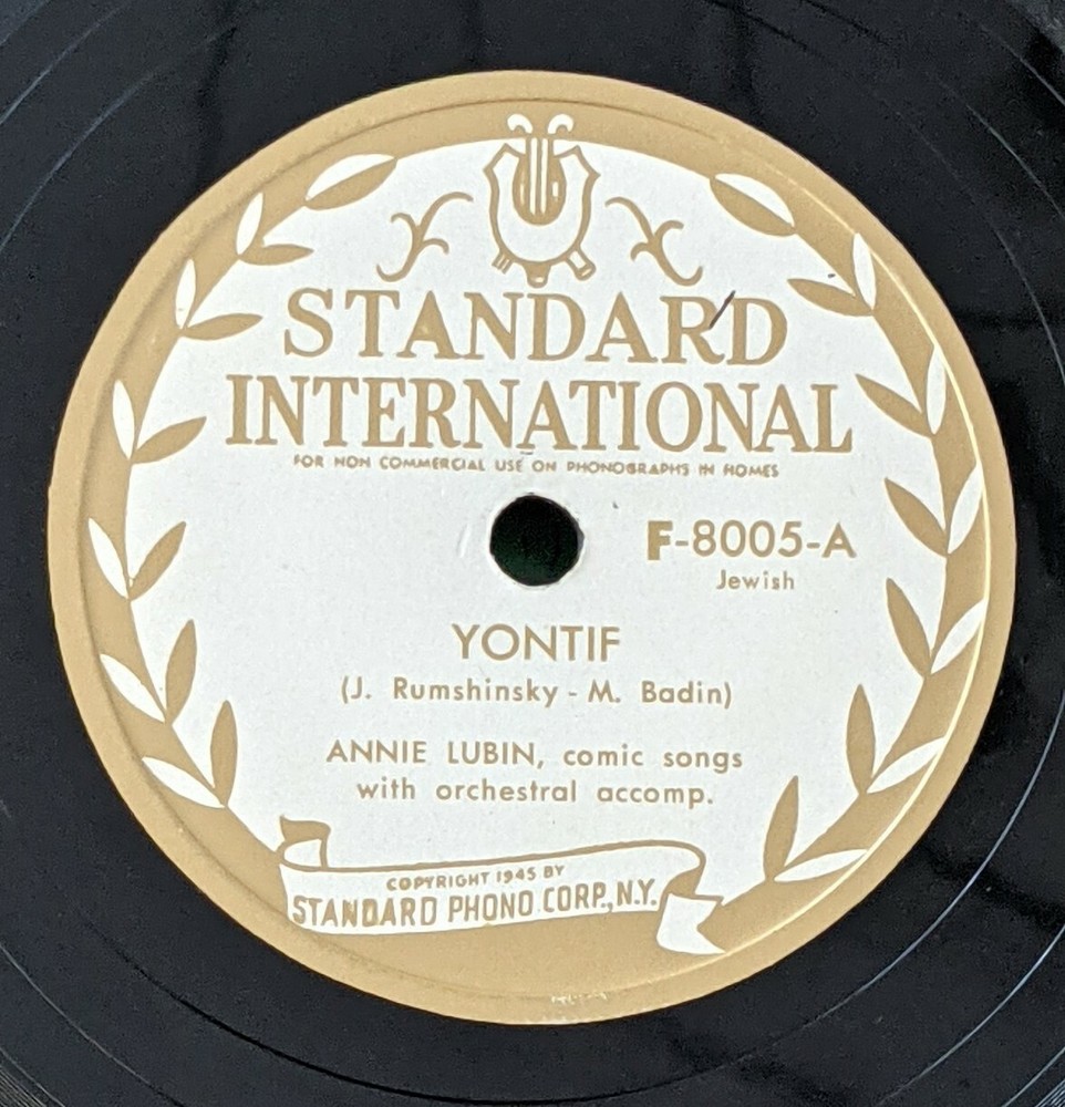 Annie Lubin - Yontif / Gewald Rooms Comedy Songs W/ Orchestra Jewish 10" 78 RPM Record. VG+ Condition. Generic Archival Quality Inner and Outer Sleeve. 1940's. Shipped with USPS Media Mail....