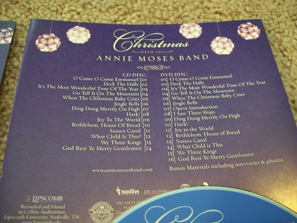 Annie Moses Band - Christmas With The... 2 CD/DVD Set *RARE* 2009 ManAlive THIS RARE 2009 MAN ALIVE 2 CD/DVD SET IS IN VG+ (SOME LIGHT SCUFFS/SCRATCHES - PLAYS PERFECTLY) CONDITION! SHIPPING: I SHIP DAILY - ALL ORDERS SHIPPED WITHIN 24 HOURS OF PAYMENT (FOR HOLIDAYS AND SUNDAYS, ITEMS SHIP NEXT AVAILABLE DAY). USA - FOR CD'S - I COMBINE SHIPPING ($1.00 PER ADDITIONAL). GUARANTEE: ALL OF MY CD'S ARE GUARANTEED TO PLAY PERFECTLY - WITHOUT SKIPS OR OTHER FLAWS. I WORK HARD TO ASSURE CUSTOMER SATISFACTION. IF YOU EVER RECEIVE A CD THAT DOES NOT MEET THIS GUARANTEE, SIMPLY CONTACT ME. YOU MAY RETURN IT FOR A FULL REFUND - INCLUDING SHIPPING BOTH WAYS . PLEASE FEEL FREE TO ASK ANY QUESTIONS. THANK YOU!