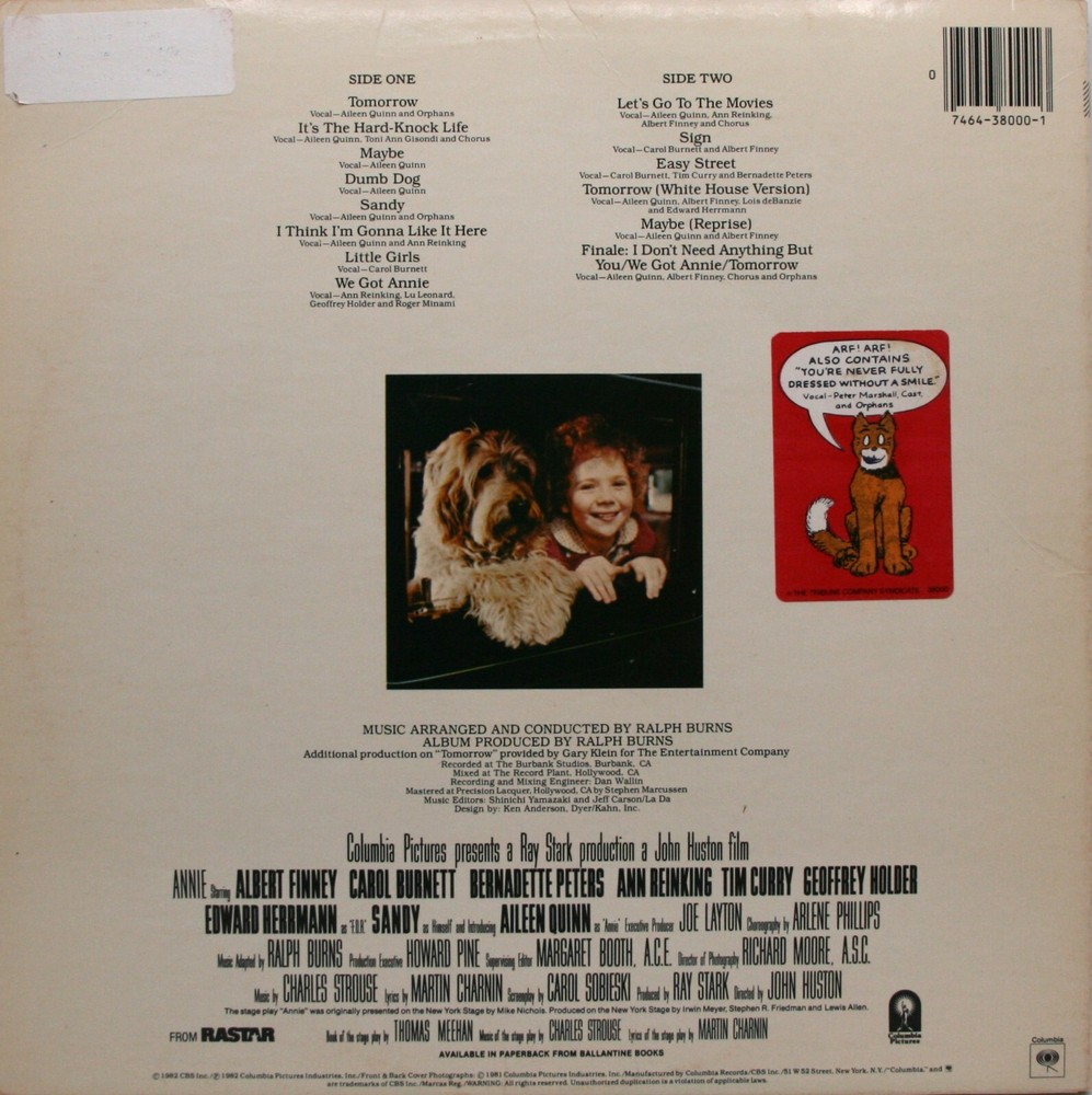 The "Annie" motion picture soundtrack vinyl LP captures the magic of the 1982 film adaptation with its joyful and memorable tunes. Featuring standout tracks like "Tomorrow" and "Maybe," this vinyl provides a nostalgic auditory experience for fans of the beloved musical.
