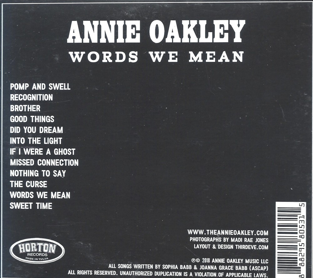 FAST one day handling, FREE shipping 100% money back guarantee. This offer includes: Annie Oakley Music CD Words We Mean vg to excellent Full picture cover Disc Track Title Duration Disc 1 1 Pomp and Swell 3.16 mins Disc 1 2 Recognition 3.14 mins Disc 1 3 Brother 2.40 mins Disc 1 4 Good Things 4.29 mins Disc 1 5 Did You Dream 4.20 mins Disc 1 6 Into the Light 4.27 mins Disc 1 7 If I Were a Ghost 3.56 mins Disc 1 8 Missed Connection 5.00 mins Disc 1 9 Nothing to Say 3.04 mins Disc 1 10 The Curse 3.52 mins Disc 1 11 Words We Mean 4.31 mins Disc 1 12 Sweet Time 1.54 mins Automatic discounts are applied to all multiple item purchases. Please visit my library of music by clicking here Music Comments, questions and offers welcomed! My Music <br><a href="https://www.ebay.com/str/quicknicklesales/Music/_i.html?_storecat=556725319" target=" _blank" =""="" style=""><font size="7">My Music</font></a> My Music