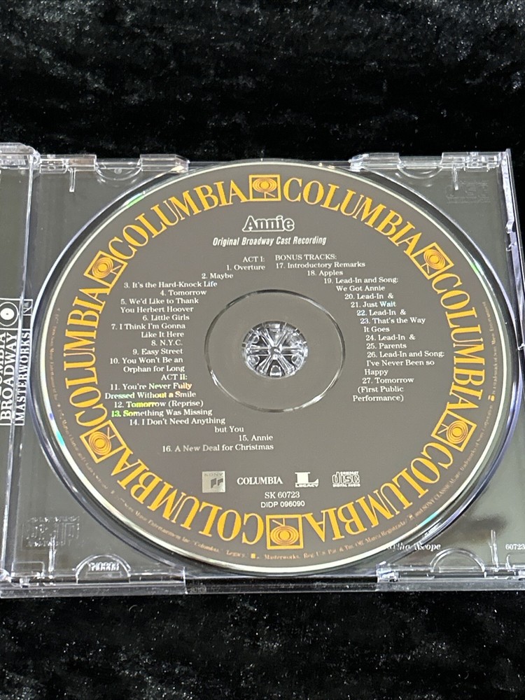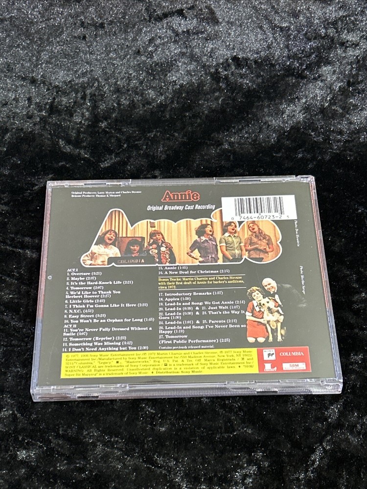 This CD features the original Broadway cast of the classic musical film, Annie. Released in 1998 by Sony Music Distribution, this CD boasts very good (VG) case and inlay conditions, as well as a standard jewel case. The CD grading is also very good (VG), making it a great addition to any musical soundtrack collection. The album includes English language vocals and was published in 1998. The CD format is standard and it has a publication date of 1998-09-15. This musical cast album is perfect for fans of the 1970s era and the soundtracks and musicals genre.