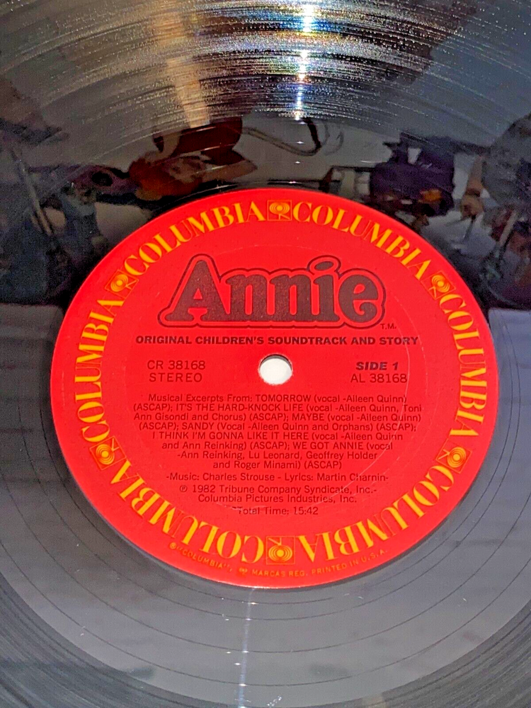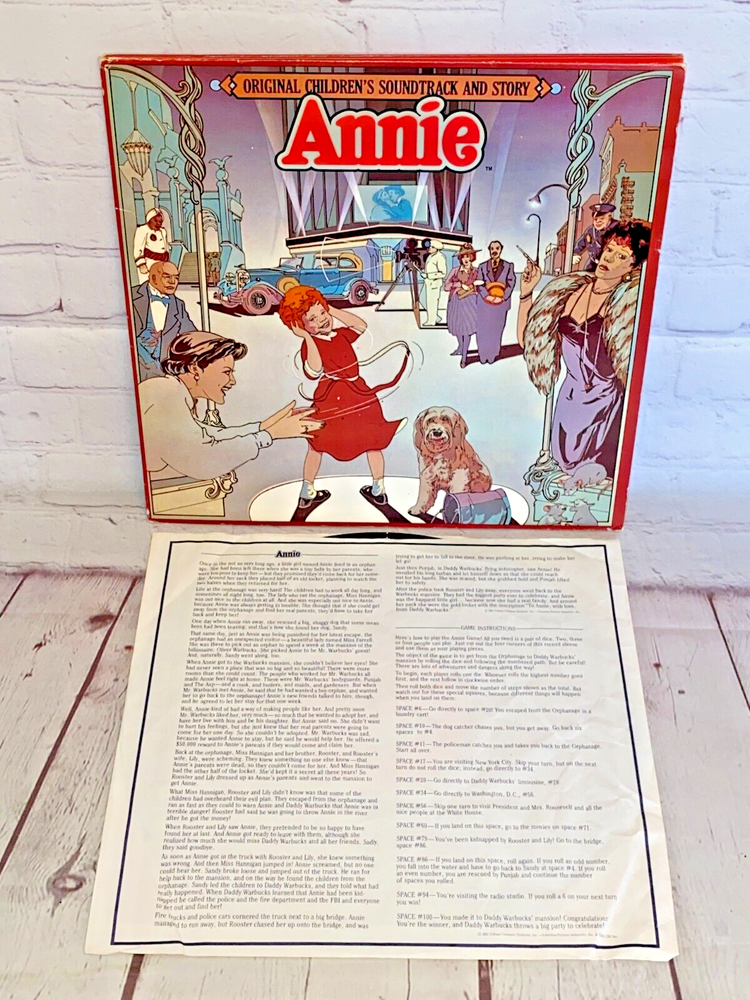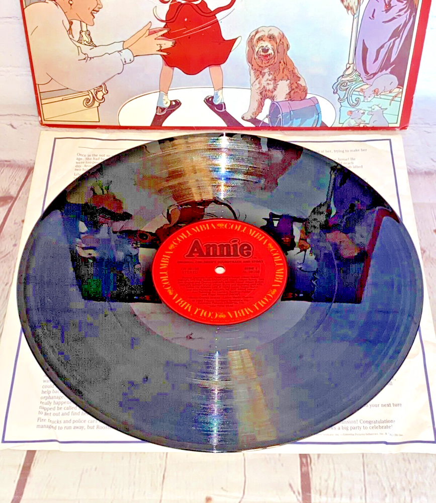Used Annie Original Children's Soundtrack and Story vinyl record 12" 33rpm Columbia 1982 | The record has light wear and works. The album cover has wear, light marks on the inside, and tear....