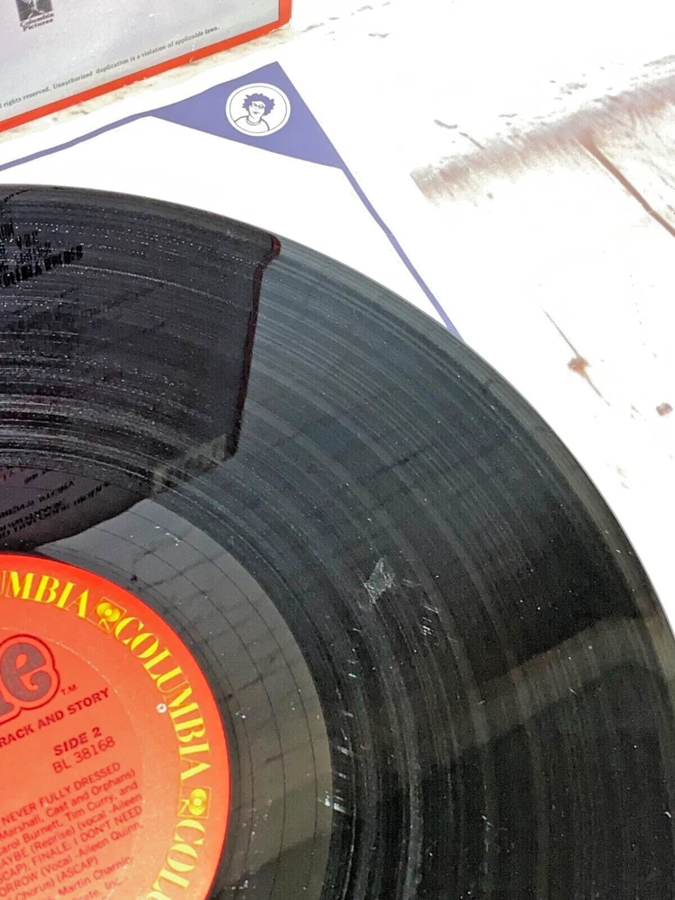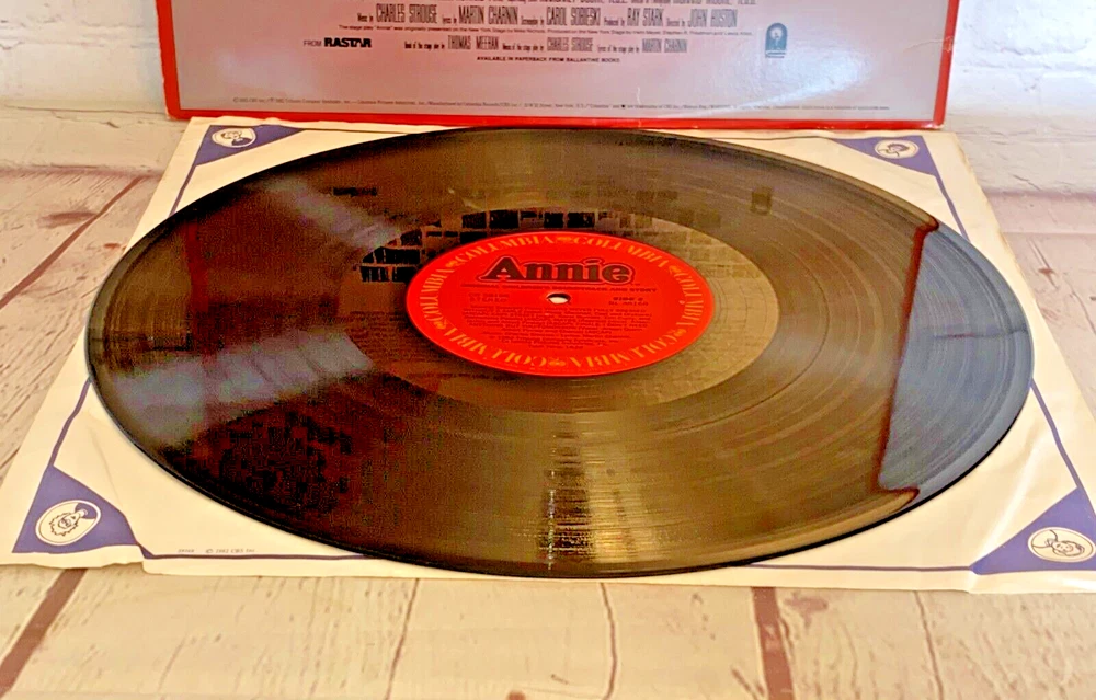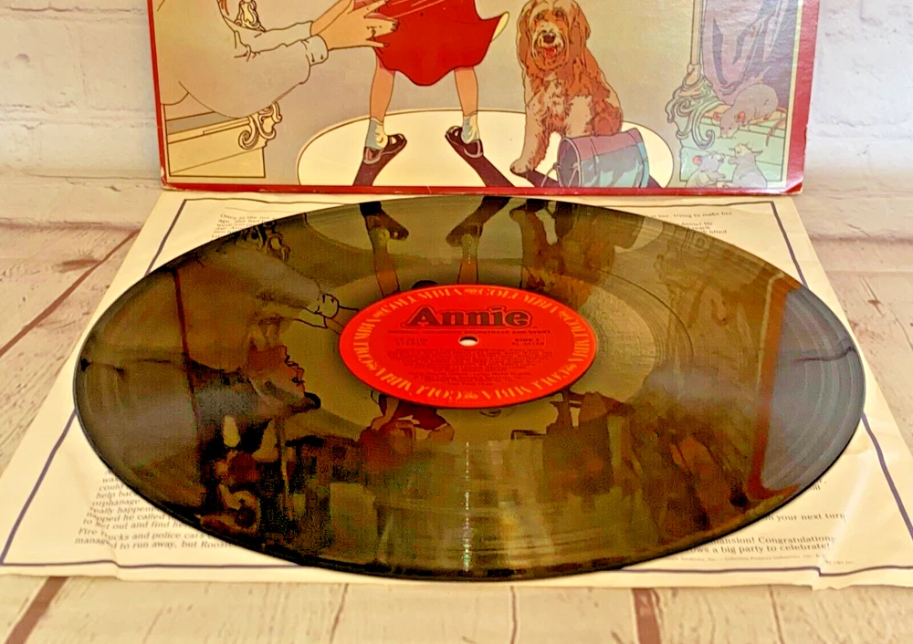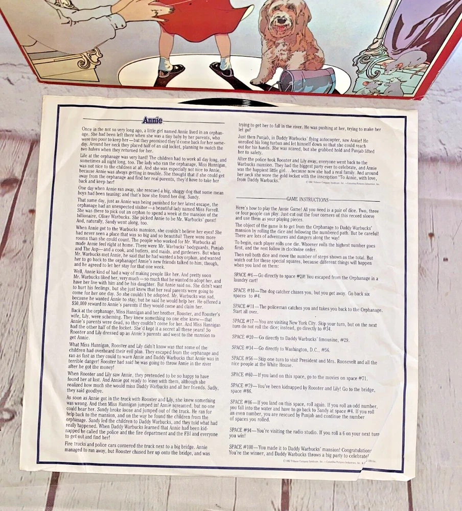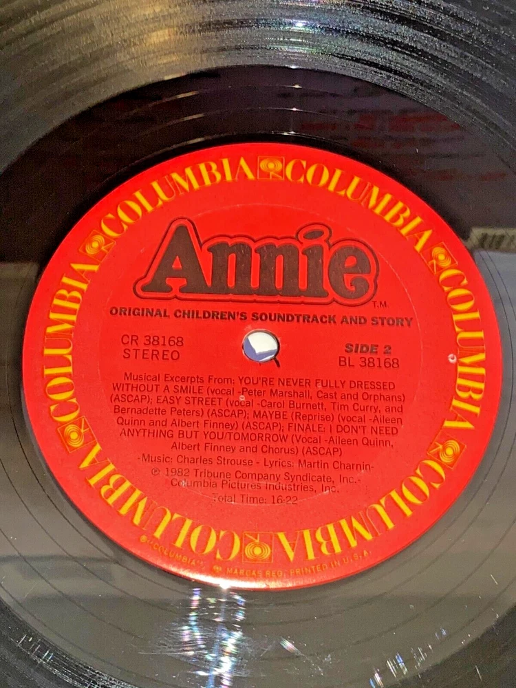 Used Annie Original Children's Soundtrack and Story vinyl record 12" 33rpm Columbia 1982 | The record has light wear and works. The album cover has wear, light marks on the inside, and tear.