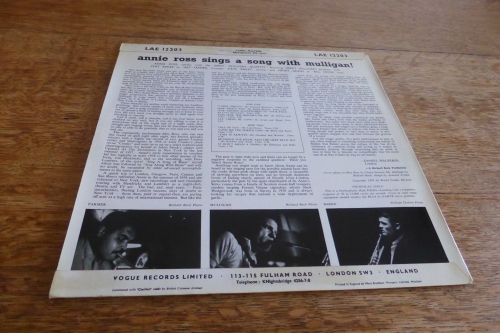 Annie Ross Sings a Song With Mulligan! UK 1959 1st Vogue LAE 12203 Cool Vocal Jazz LP * Combined shipping on all items, see my other listings, up to 6x LP's is the same postage price as 1 in the UK, please await revised invoice for multiple purchases / I will refund the difference if you're overcharged for postage* Rare UK 1959 1st Pressing on the Vogue / World Pacific Label, LAE 12203 Visually under very bright light the vinyl is a nice example with a bright sheen. Has some light wispy play and scuff traces, has been cleaned, VG+/EX- The labels are clean, some light spindle traces, VG+ The laminate sleeve is a nice clean example, a few minor marks, and some laminate lift around the opening, s ee photos, EX- *Strict grading based on the outset standards of the Rare Record Price Guide. Please see my other items for rare records, and combined shipping costs on all items. Substantial shipping discounts to China, South Korea, Japan, Hong Kong, Taiwan, USA etc. for multiple purchases If you have any questions please ask!