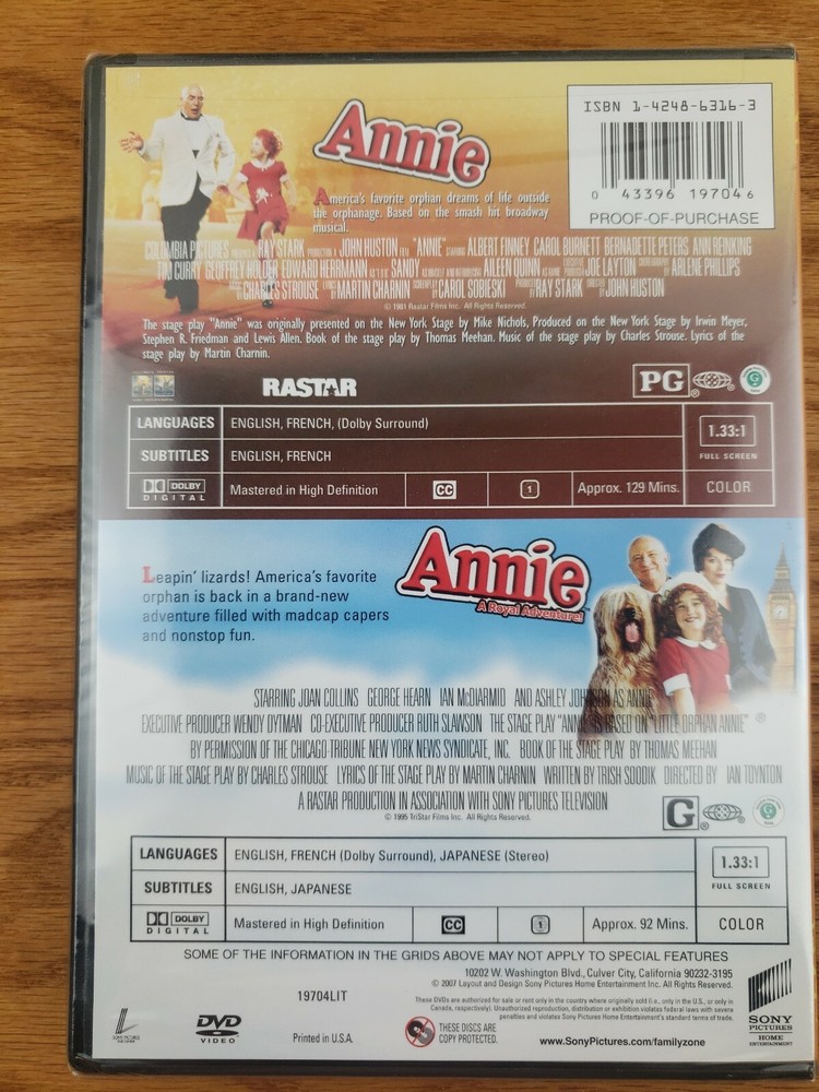 Annie & Royal Adventure musical, New, DVD,2 movie Quinn, Finney Burnett Collins. Condition is "Brand New". Shipped with USPS Media Mail....