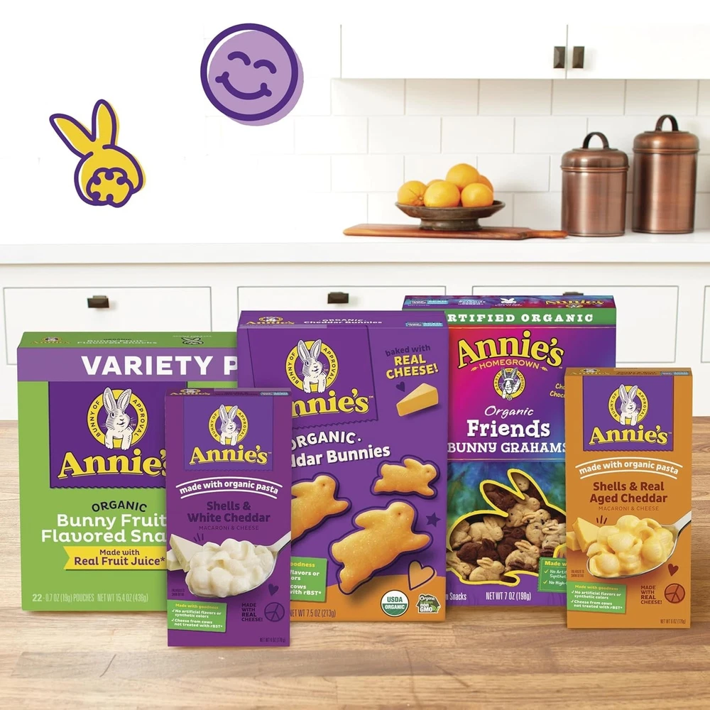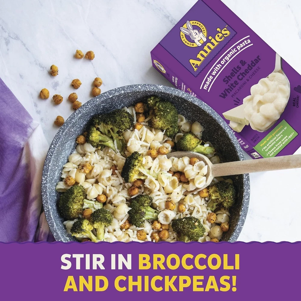 From the manufacturer Annie’s has an array of quick, easy ways to bring cheesy yumminess to your table. Made with purposefully chosen ingredients, there’s a tasty Mac & Cheese variety for every bunny. Annie's Mac & Cheese Cups pair organic pasta with avorful aged cheddar cheese for a taste kids love. Microwaveable and ready in minutes as an irresistible bite for busy bunnies. Serve up smiles with Shells & White Cheddar, crafted with care. Our combo of rich, real cheese and pasta is ideal for lunchtime, dinnertime or anytime. Parent trusted, bunny approved! Even with a full schedule, you can count on Annie’s to help fill bellies with warm, wholesome comfort food like Deluxe Rich & Creamy Shells — made with real cheese sauce. Here at Annie’s, sharing snacks is a way to share a little more joy. We have cheesy, crunchy, chewy and oh-so-yummy options to brighten every bunny’s day. Product Description Product Description Bring creamy, cheesy goodness to your family dinner table with Annie's White Cheddar Shells and Mac and Cheese. Made with organic macaroni shells and real white cheddar cheese, Annie's mac and cheese offers a great-tasting adult and kids dinner addition that's packed with flavor. Annie's mac and cheese with organic pasta contains cheese from cows not treated with rBST, offering quality ingredients in every bite. This pasta shells and cheese dinner side contains no artificial flavors or synthetic colors. It's ready in just ten minutes by following the simple steps on the package. This six-ounce box contains about two-and-a-half servings for a quick kids mac and cheese dinner option. Annie's makes products in over 20 family-friendly categories, from fruit-flavored snacks and cereal to mac and cheese. For busy bunnies and families on the go, we help make life a lit Crunch into big fun and flavor with Organic Cheddar Bunnies Crackers. Kiddos will enjoy the taste. Parents will love that they're made with real cheese and no artificial flavors or synthetic colors. Take goodness to go with Organic Chewy Granola Bars, made with whole grain. They help make life a little easier and more yummy by sweetening up packed lunches, car rides, and more. Annie’s Fruit Flavored Snacks are made with real fruit juice and gluten free — something to be hoppy about. Crave a deliciously juicy treat? Give these gummies a nibble.