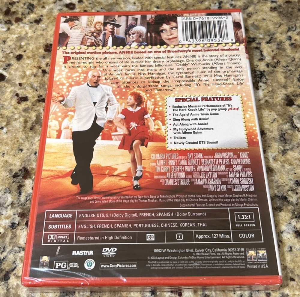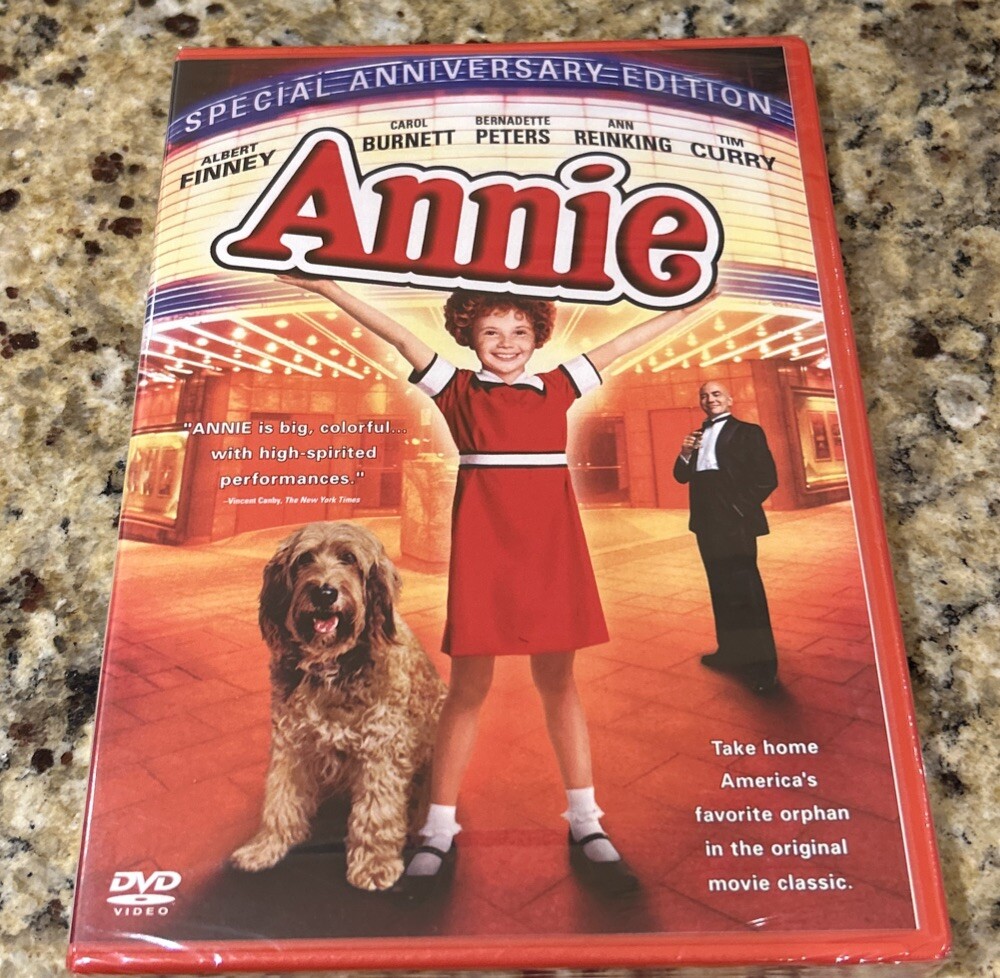 Celebrate the special anniversary of the classic musical with the Annie- SPECIAL ANNIVERSARY EDITION DVD. This DVD features an all-star cast including Carol Burnett and Bernadette Peters, and is a must-have for any fan of the movie. The format of the DVD is perfect for any device that can play it, and it's a great addition to any collection of movies and TV shows. Get ready to sing along and enjoy the timeless story of Annie, a young girl who sets out to find her real family after her parents die. This special edition DVD includes bonus features that make it even more special, like behind-the-scenes footage and interviews with the cast and crew. Don't miss out on this amazing opportunity to own a piece of movie history. (SOTO)