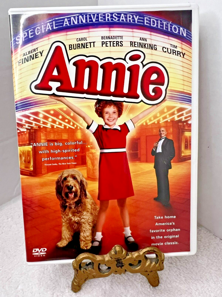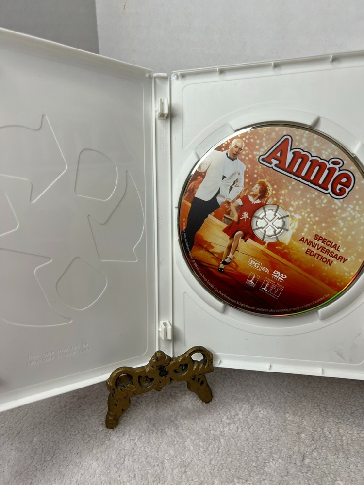 This special anniversary edition of Annie on DVD is a must-have for any movie collector. Starring a talented cast and featuring unforgettable musical numbers, this classic film is an essential addition to your library. The disc has been recently cleaned and is in good condition for viewing. Experience the heartwarming story of a spunky orphan who charms her way into the hearts of a billionaire and his staff. The DVD format allows you to enjoy the vibrant colors and catchy tunes of Annie in the comfort of your own home. Add this beloved movie to your collection today!
