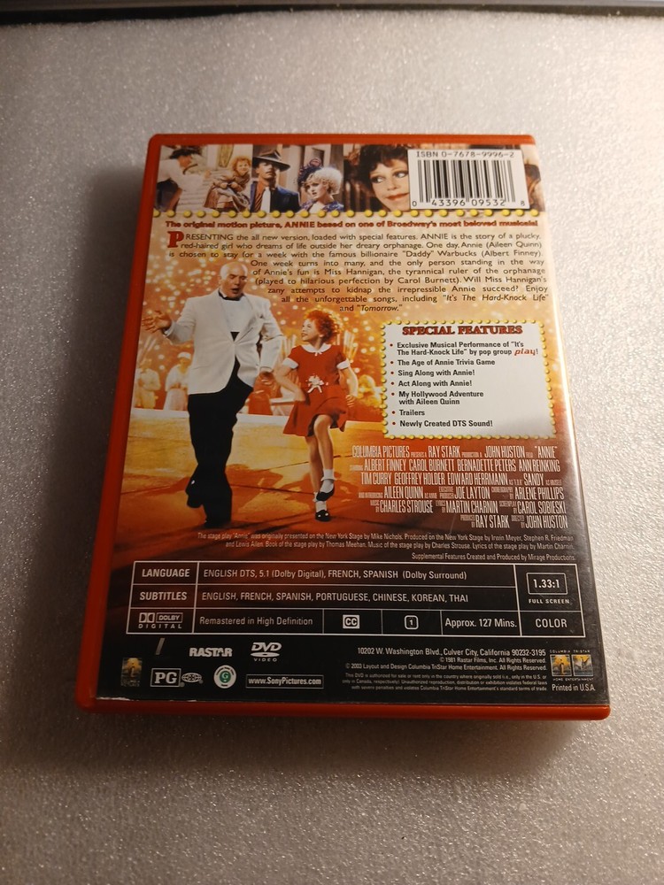 This DVD is a must-have for any movie lover's collection. The story of Annie is one that will captivate viewers with its heartwarming themes of love, family, and determination. This Special Edition DVD includes bonus features that provide an exclusive look at the making of the movie and the life of the beloved character. The DVD is formatted for easy viewing and is compatible with all DVD players. It is a great addition to any movie collection and is perfect for those who are looking for a family-friendly viewing option. Get your copy of Annie today and experience the magic of this timeless classic.