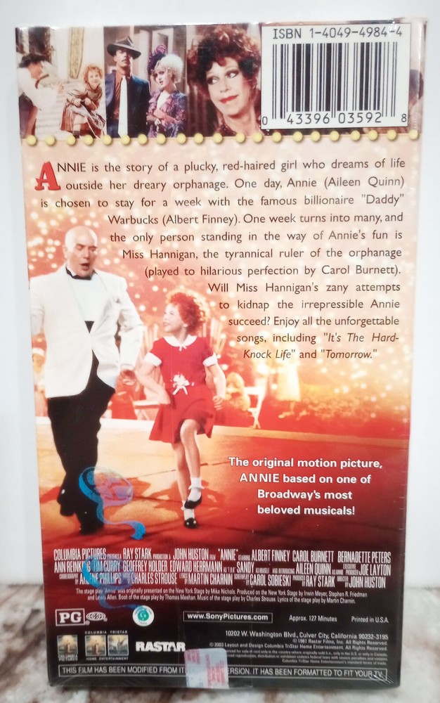 Up for sale is this Annie Special Anniversary Edition 1982 VHS released 2004. This tape is factory sealed. This would make a great holiday gift for any classic movie lover in your life. Thanks for looking and do checkout my other items for sale.