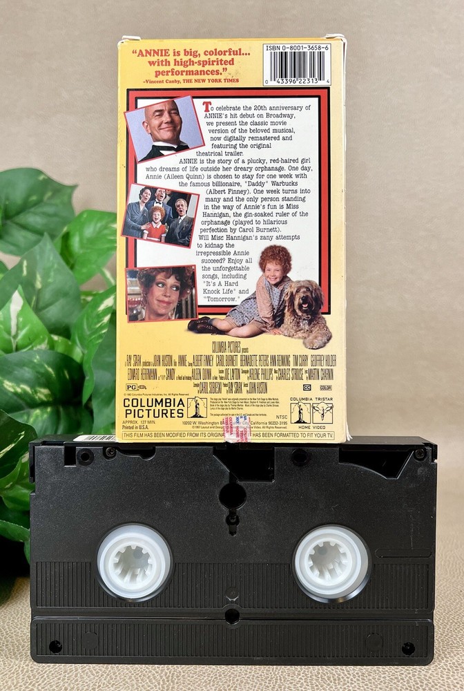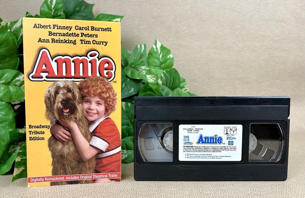 Experience the classic musical tale of "Annie" on VHS. Starring Albert Finney, Bernadette Peters, and Carol Burnett, this film is a must-see for fans of musicals and Broadway productions. Directed by John Huston, the movie follows Annie, Aileen Quinn, as the lead and is produced by Columbia Pictures. This VHS is in great, used condition with some cosmetic wear on the cover. Edges and body of the case may show scuffs, rub marks, small discolorations, folded edges, small tears, and/or minor scratches. Zoom in on photographs to view the fine details. This item is perfect for collectors or those who want to relive the magic of this beloved musical.