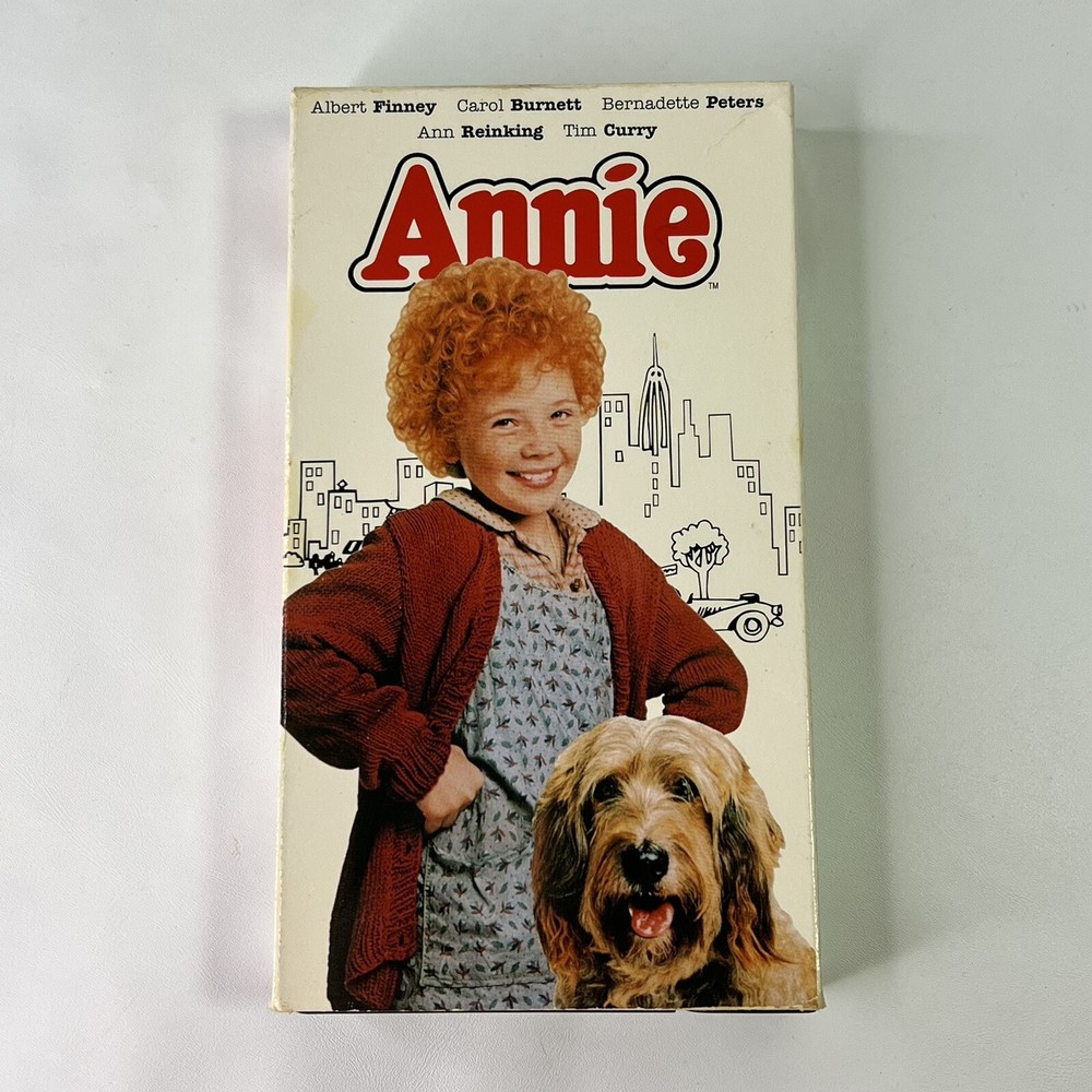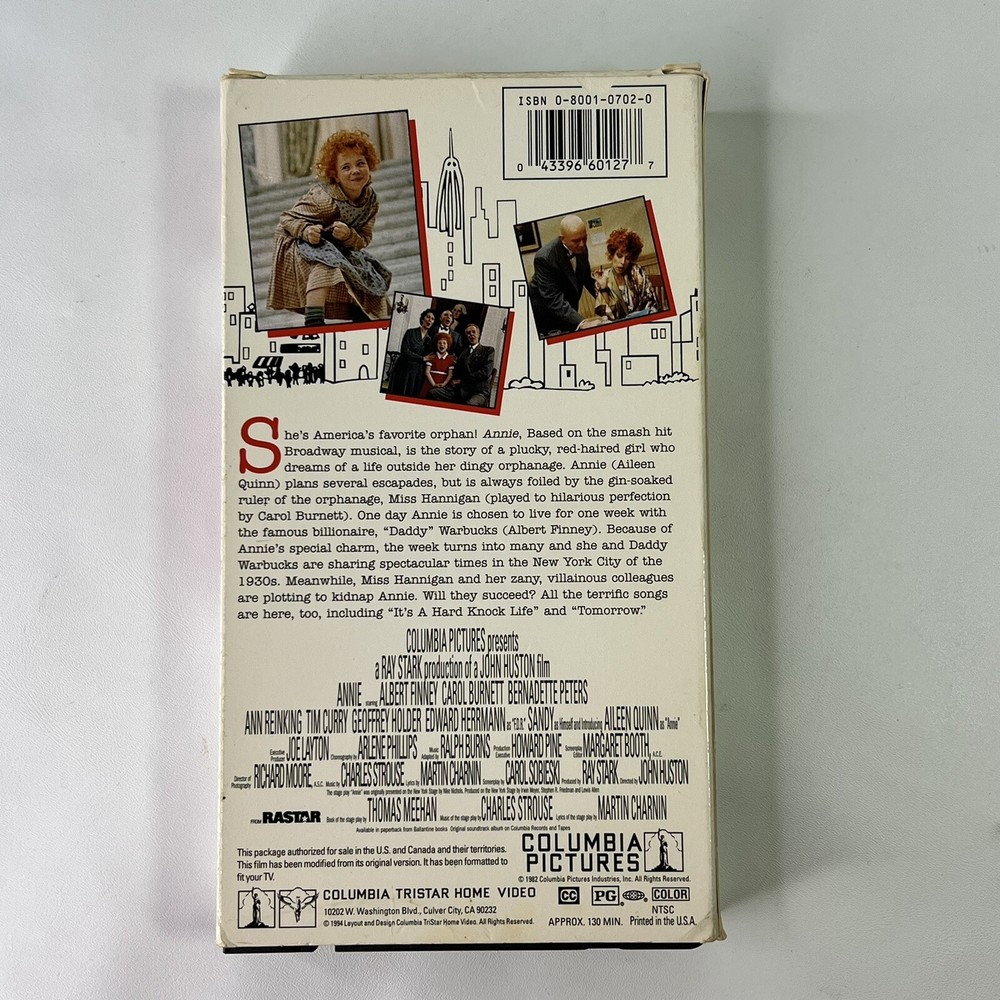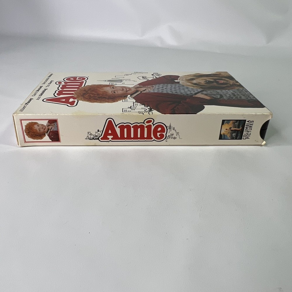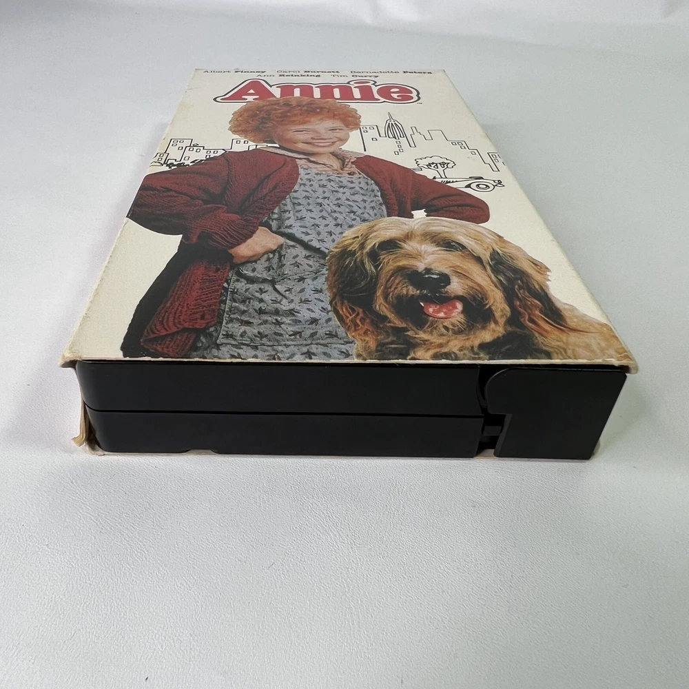Annie VHS Cassette Tape Tested and works. Box has some wear. Good, pre-owned condtion. The glue from the sticker on the cassette tape has bled through leaving an oily look on the sticker. (see pic)