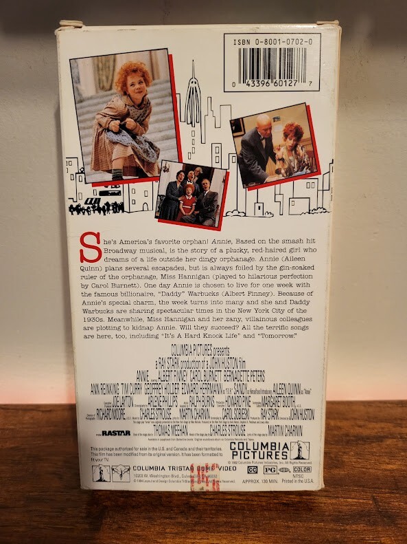 This listing is for a 1993 printing of Annie (1982) on VHS. Case and tape are in fantastic condition. Slight creases on one spine (pictured). Movie has not been tested and is being sold as is. This is authentic, not a reproduction. Ships fast and free!