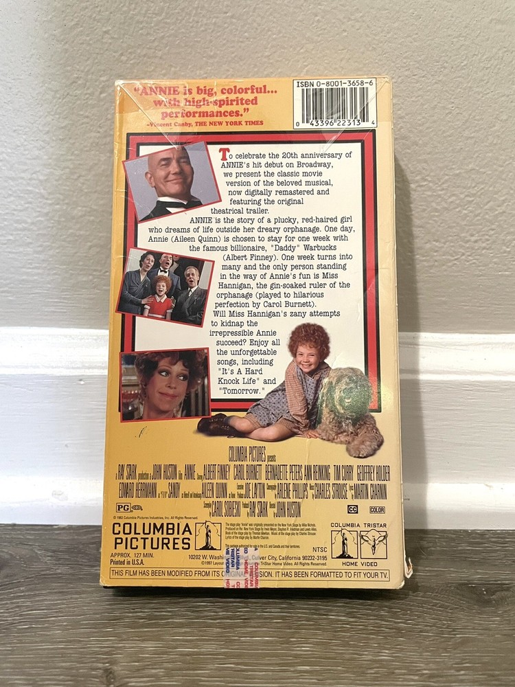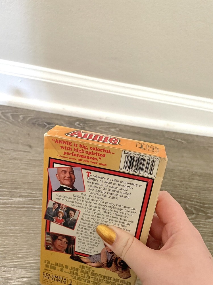 This is a listing for a copy of Annie on VHS. This tape is in aesthetically good condition, but does have some wear on its sleeve. (See photos 3 and 4.) This tape has NOT been tested. Non-smoking, pet-friendly household. Perfect for fans of this musical! $5