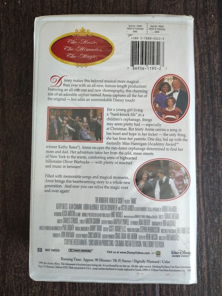 Annie 1999 Disney VHS Clamshell Kathy Bates Family Classic
