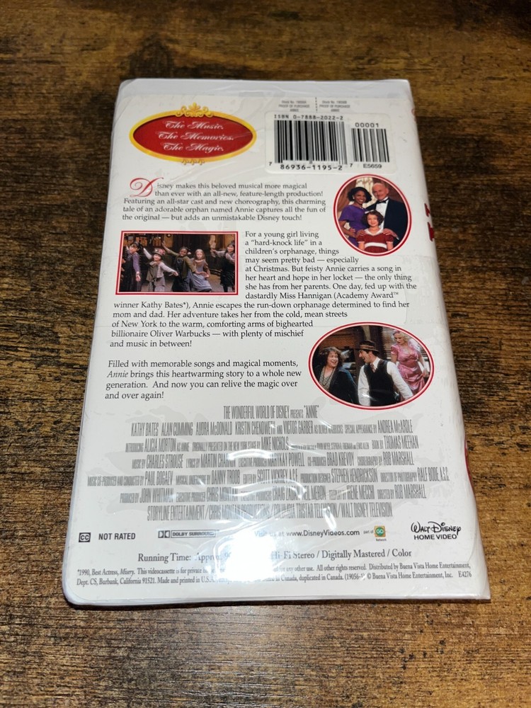 Up for sale is an Annie VHS 1999 The Disney Store - Kathy Bates STILL SEALED & NEW IN CLAIM SHELL We have recently obtained a lot of NEW VHS tapes that are still in their original packaging. We will combine shipping on multiple items. From a non-smoking home. Check our feedback and bid with confidence.