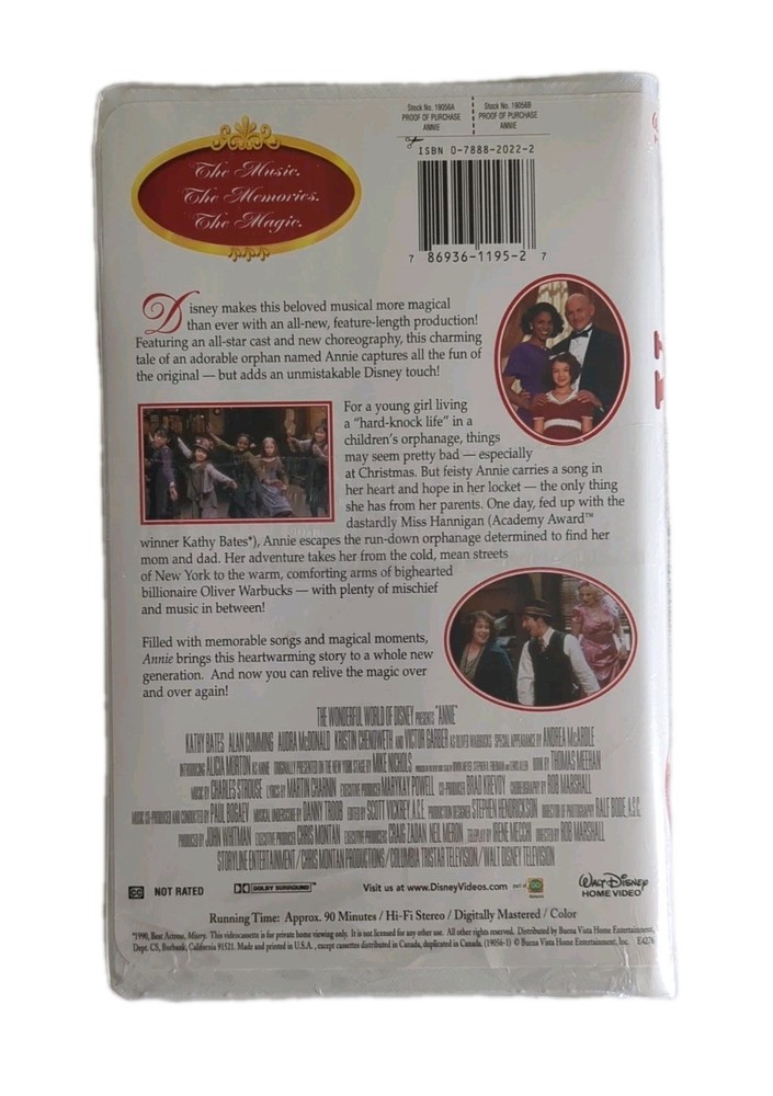 This classic musical film, "Annie" (VHS, 2000), is a must-have for any collector of children's and family movies. Directed by Rob Marshall, this live-action movie features an all-star cast including Victor Garber, Alicia Morton, Alan Cumming, and Kathy Bates.