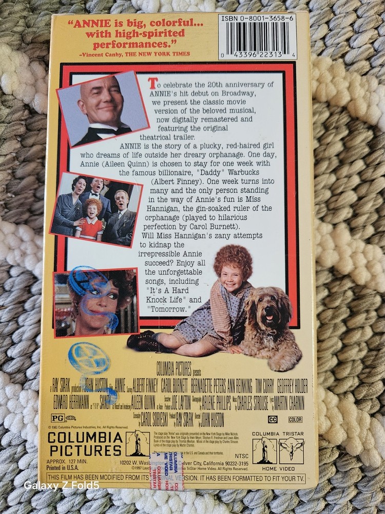 A red-haired mop-top orphan (Aileen Quinn), yearning to break out of her dreary life in an orphanage run by an iron-fisted, boozy matron (Carol Burnett), charms billionaire Oliver "Daddy" Warbucks (Albert Finney) into adopting her--but what she really wants is to find her real parents. Academy Award Nominations: 2, including Best Art Direction-Set Decoration, Best Original Score.