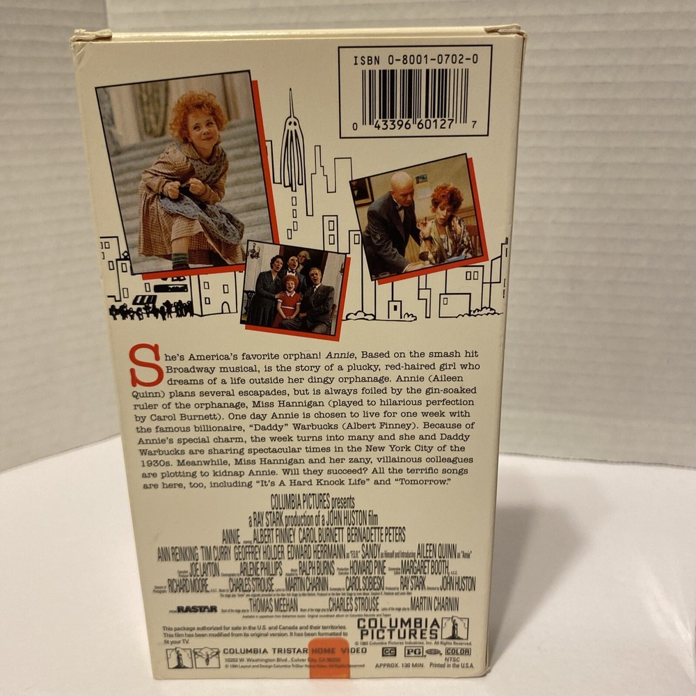 You will receive as shown. She's America's favorite orphan! Annie, Based on the smash hit Broadway musical, is the story of a plucky, red-haired girl who dreams of a life outside her dingy orphanage. Annie (Aileen Quinn) plans several escapades, but is always foiled by the gin-soaked ruler of the orphanage, Miss Hannigan (played to hilarious perfection by Carol Burnett). One day Annie is chosen to live for one week with the famous billionaire, "Daddy" Warbucks (Albert Finney). Because of Annie's special charm, the week turns into many and she and Daddy Warbucks are sharing spectacular times in the New York City of the 1930s. Meanwhile, Miss Hannigan and her zany, villainous colleagues are plotting to kidnap Annie. Will they succeed? All the terrific songs are here, too, including "It's A Hard Knock Life" and "Tomorrow"