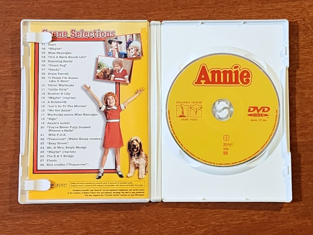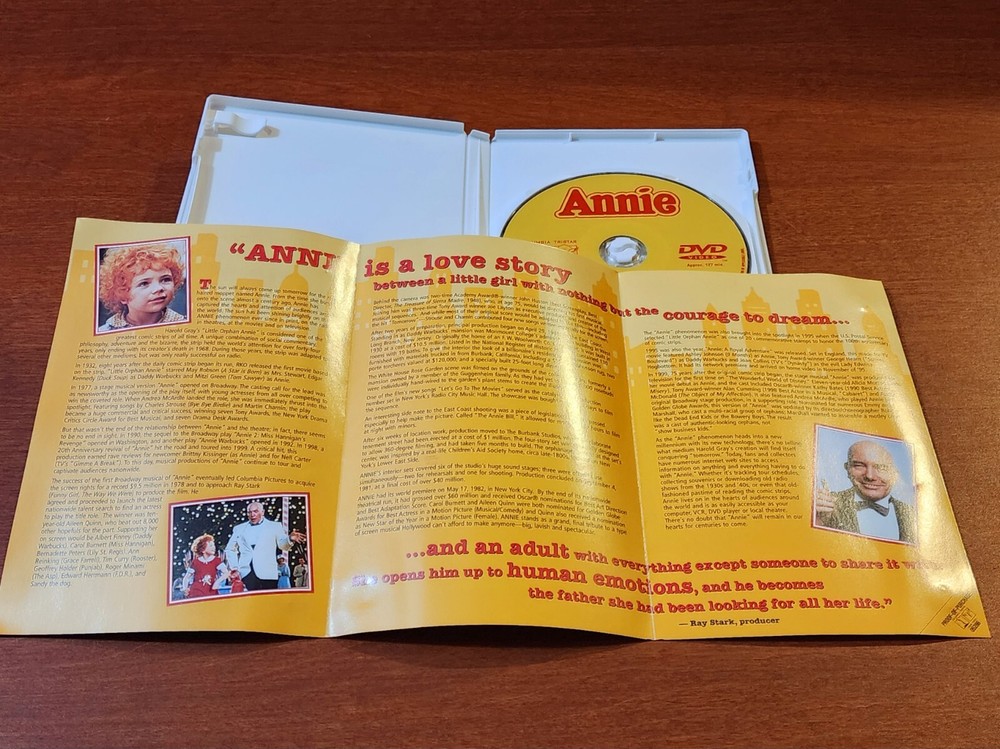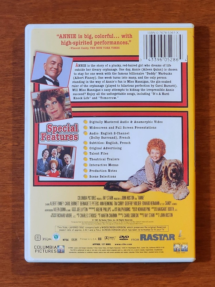 Relive the magic of the iconic 1981 musical, "Annie," on DVD, featuring a brilliant cast led by Albert Finney and Carol Burnett. This classic film brings to life the heartwarming story of an 11-year-old orphan named Annie, fighting for the love of her childhood sweetheart and the dream of a better life. With its family-friendly genre and a PG rating, it's perfect for a cozy movie night. The DVD offers an array of special features, including an engaging behind-the-scenes featurette, and comes with subtitles in both English and French, catering to a diverse audience. *The item is PRE-OWNED and in good condition. All items are sold AS-IS. *Feel free to review and double-check all the pictures closely (BUYER'S RESPONSIBILITY). ALWAYS CHECK THE MEASUREMENTS AND APPEARANCE BEFORE YOU PURCHASE. The item is 2 nd hand/used/preloved and in good condition for its age. Item is sanitized. Pictures posted are of the actual item(s) in its current state. Again, all items are sold AS-IS, so please exercise BUYER'S DUE DILIGENCE. Your positive feedback is highly appreciated for a small seller like us. Thank you for your interest on this item and for shopping on Ebay!