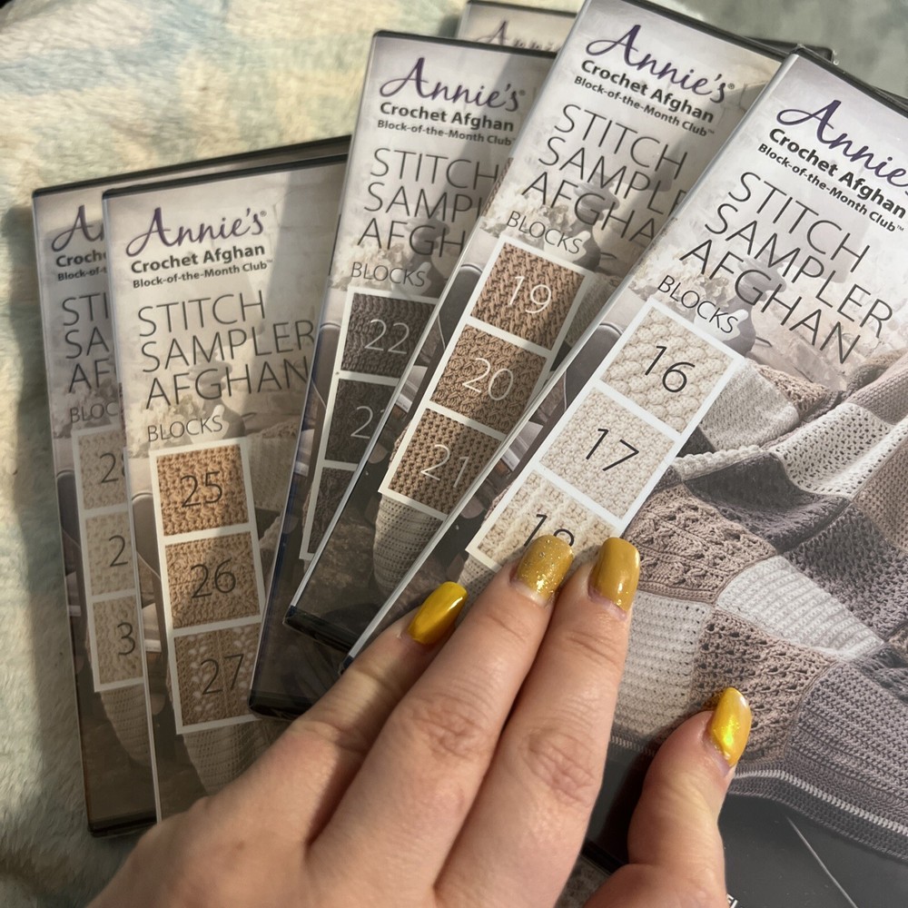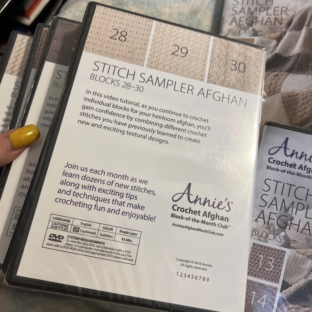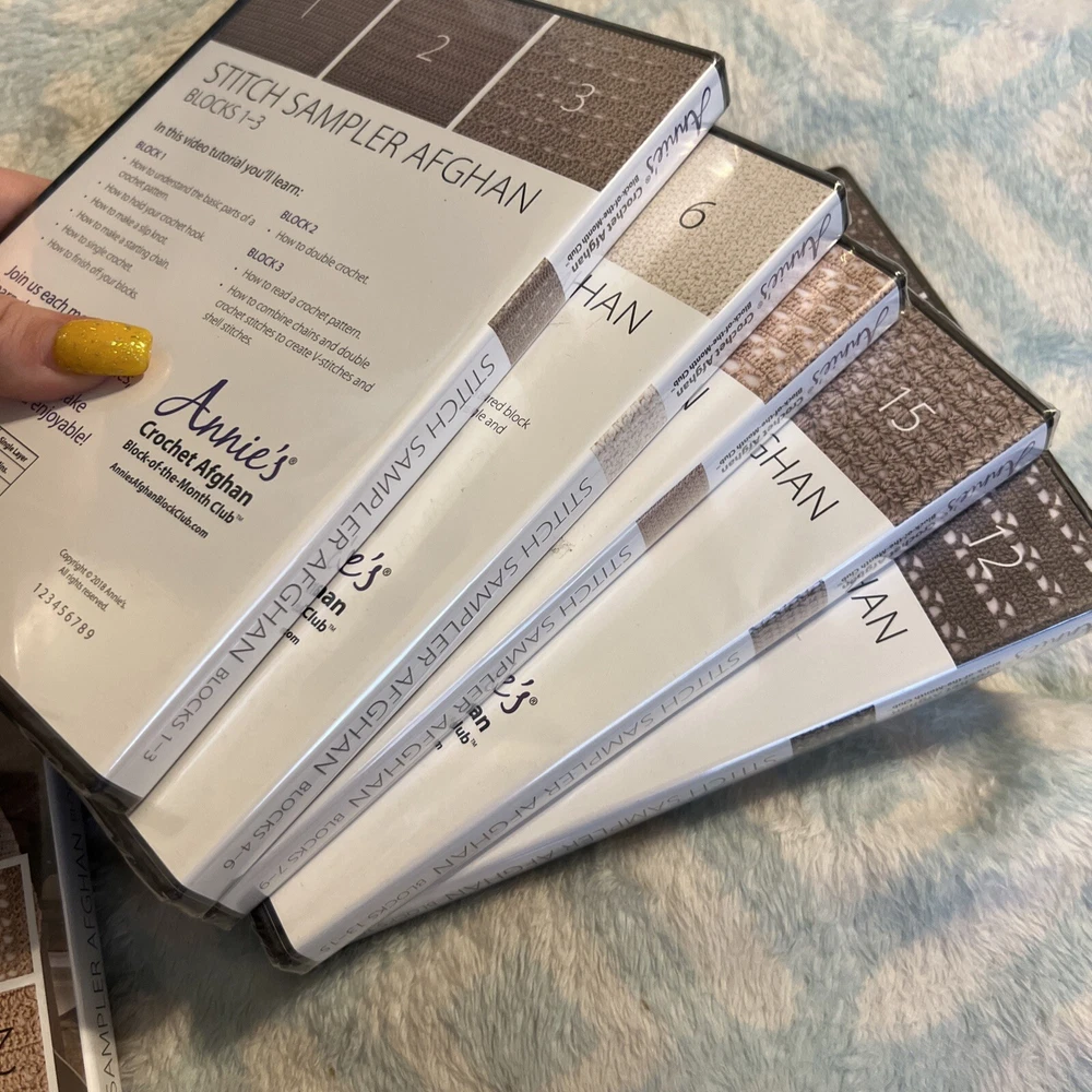 Annie’s Crochet Afghan Stitch Sampler Blocks 1-30 DVD - 10 DVD Set •ALL NEW•. ALL SEALED !!! See pics. Any questions please email me. I only sell AUTHENTIC ITEMS!!! Buy with CONFIDENCE!! I also ship out SUPER FAST 💨 Any issues please contact me first…. HAPPY BUYING 😀 Check my other listings I have tons of RARE AND OUT OF PRINT DVDS BOXSETS & 3d Blurays !!!