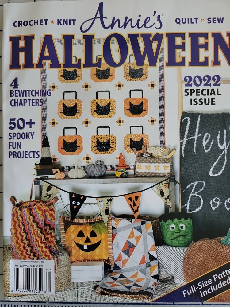 Annie's Halloween 2022 Special Issue Magazine Crochet, Knit, Quilting and Sewing 4 Bewitching Chapters 50+ Spooky Fun Projects Full-Size Patterns Included...