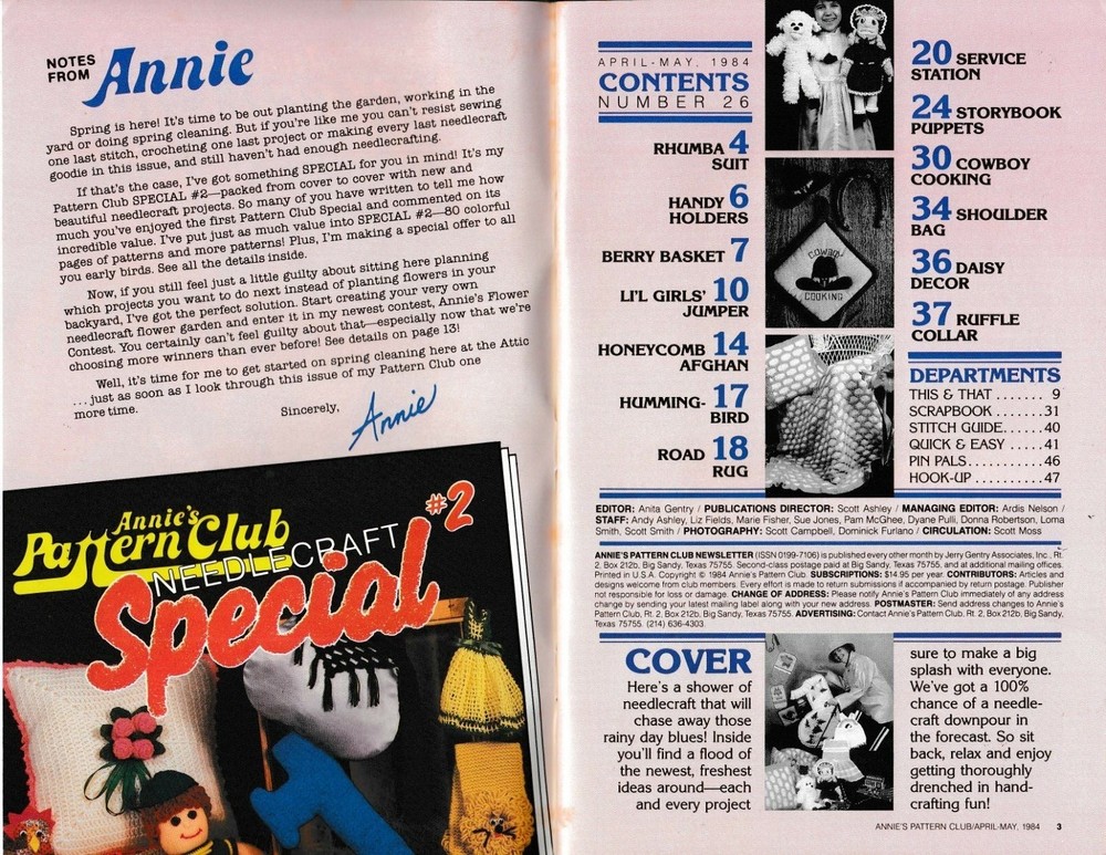 Annie's Pattern Club Magazine | April-May 1984 | Number 26. 48 pages. Please note: this is a USED vintage magazine that is over 30 years old. It is in good condition. All patterns are still readable and usable. Shipping will be via USPS Mail. Purple Kitty is located in New York State and must collect sales taxes for items shipped to addresses within New York State. eBay may also collect sales taxes in other states. Check out my other items in my Purple Kitty eBay Store . Thank you for shopping with Purple Kitty!