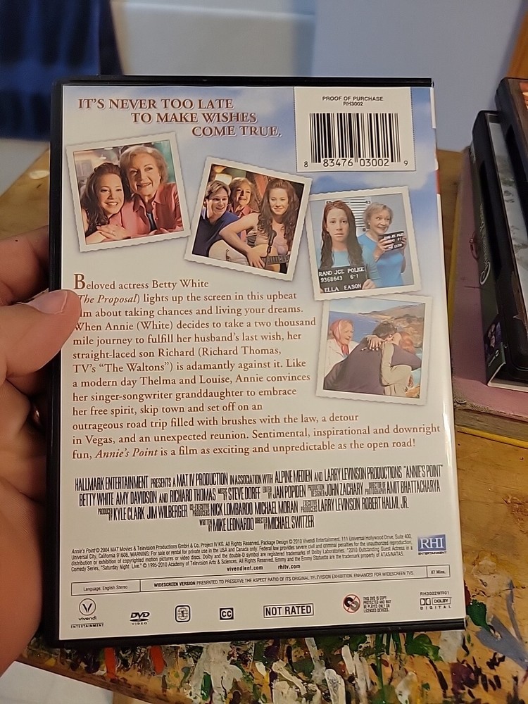 This DVD features the beloved Hallmark movie "Annie's Point" starring Betty White and Richard Thomas. The film, directed by Michael Switzer, is a heartwarming drama that is sure to capture your attention. Released in 2010, this DVD is a must-have for any movie lover's collection. The movie tells the story of Annie, a 90-year-old woman who sets out to find the love of her life after her husband dies. With an all-star cast and excellent writing, "Annie's Point" is a truly captivating film that will keep you entertained from beginning to end. So why wait? Add this DVD to your collection today and experience the magic of "Annie's Point" for yourself.
