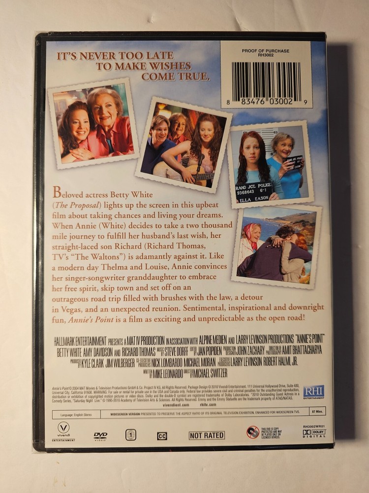 W.B.Vintage.Today Where you Will Find Item's From Today and Yesterday Description Annies Point - Sometimes Life Takes A Detour DVD NEW SEALED Customer Promise Your satisfaction is always guaranteed. In the rare occurrence there is a problem with your purchase, we will work with you to make sure the issue is resolved and you are completely satisfied. You really should take a look at things from the W.B. Vintage.Today - Your Just might find what you have been looking for. Shipping Policy You didn't wait to buy it, so we won't wait to ship it. We will ship same day to 3 days if the item is paid for by noon Central Time. If payment arrives after this time, we most times ship next day. USPS and FedEx. We determine the best carrier for your item based on size, weight and destination. Careful packaging is always a priority. Our shipping manager oversees the packaging of every item to ensure quality and accuracy. Return Policy Our returns policy is simple. If you are not satisfied for any reason just return the item to us within 30 days and we will give you a full refund. If we made a mistake, we will even refund shipping cost. Our ultimate objective is your complete satisfaction.