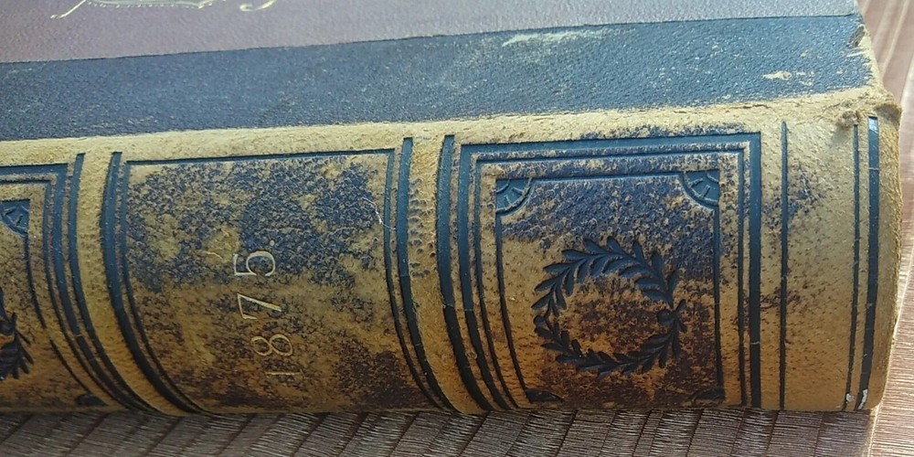 Antique Embossed Leather Bound Book Art Journal Printed in 1875.
