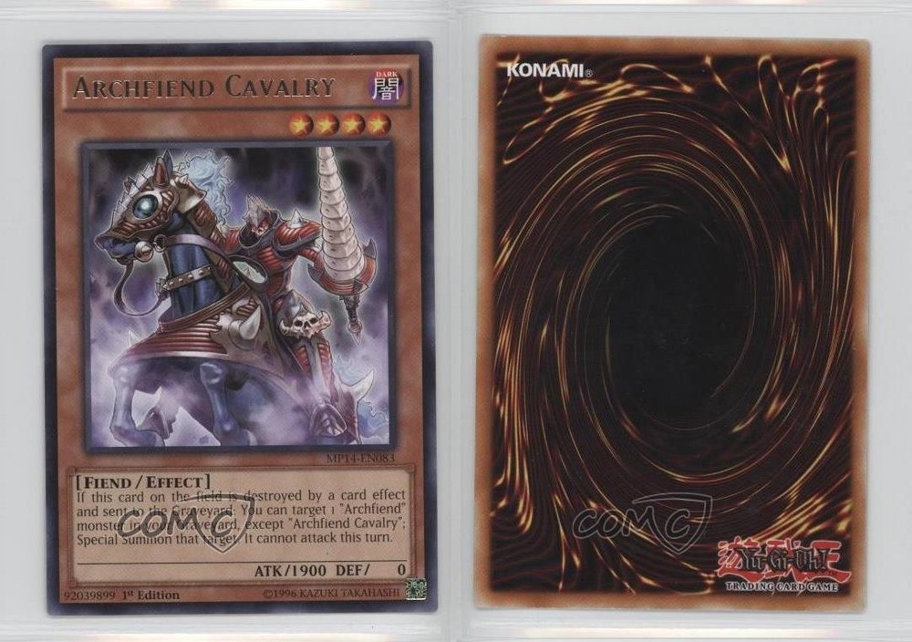 2014 Yu-Gi-Oh! Mega-Tins Mega Pack - [Base] - 1st Edition #MP14-EN083 Archfiend Cavalry COMC Item: 29798321 - YuGiOh Card - Featuring Archfiend Cavalry Search for more: 2014 Yu-Gi-Oh! Mega-Tins Mega Pack Search for more: 2014 Yu-Gi-Oh! Mega-Tins Mega Pack - [Base] - 1st Edition View all of our Listings Auctions Buy It Now About Us Located in the beautiful Pacific Northwest, COMC (Check Out My Cards) is the world's largest consignment service for trading card singles. More than 10,000 people have used our consignment service to list over 50 million trading cards. Find out how we can help you consign your items on eBay by contacting us through eBay messaging. COMC -- "The Safe & Easy Way to Buy & Sell" Raw Condition for Modern Cards Unless otherwise noted, raw modern cards are listed in Near Mint-Mint condition or better. A NM-MT card appears to be Mint at first glance, but upon closer inspection, may exhibit some of the following: minor print defects (e.g. roller marks, print line, dimple), minor scratches, slight edge wear, and slight corner wear. Centering is clearly visible in the images provided and does not factor into our condition assessment. Raw Condition for Vintage Cards Unless otherwise noted, raw vintage cards are listed in Excellent condition or better. An EX card may exhibit some of the following: minor rounding of corners, surface wear, print defects, light scratches, and slight edge wear/chipping. Centering is clearly visible in the images provided and does not factor into our condition assessment. Domestic Shipping Combined shipping for multiple items is available. To receive combined shipping, please ensure all desired items are in your eBay shopping cart before proceeding to checkout. eBay limits orders to 40 items per order. We automatically combine multiple orders placed on the same day. If you place multiple orders on the same day, please contact us to request a refund of applicable shipping costs. Signature confirmation may be required on invoices over $400. All cards are protected and shipped securely. International Shipping COMC offers eBay's International Shipping (EIS) for international orders under $2,500* (see country exceptions below). All duties and import fees are paid at checkout; in the rare event that there are additional import fees upon delivery, these are borne by the buyer. EIS packages route through a shipping hub in Erlanger, KY before shipping to their final destination. Please note that EIS does not allow for combined shipments. The shipping rates are determined by eBay and cannot be adjusted. *Maximum sale price exceptions: Colombia, Kuwait ($2,000); Taiwan ($1,539); Chile, Costa Rica, Guatemala, Honduras, Trinidad and Tobago ($1,000); Antigua and Barbuda, Aruba, Belize, Dominica, Grenada, Philippines, Saint Kitts and Nevis, Saint Lucia, Montserrat, Turks and Caicos Islands ($500); Dominican Republic, El Salvador ($200). Please request a shipping quote through eBay messaging for orders that exceed the maximum sale price supported by eBay's International Shipping. You will be responsible for all duties and import fees for international orders shipped outside the EIS. All cards are protected and shipped securely. Payment COMC does not accept offers on our cards through our eBay storefront. COMC utilizes eBay’s managed payments system. If you are experiencing difficulties making a payment, please contact eBay for assistance. Return Policy Returns are only accepted on the rare occasion the item is not as described. If you are making a return, please initiate the return process through eBay so a mailing label can be provided for you. Prior to listing, our expert team carefully assessed this item to represent it accurately. Please review the description and high-definition images prior to purchasing to ensure this item meets your satisfaction. We welcome you to contact us if you have further questions about this item. Trust and Integrity COMC carefully assesses each item consigned to us to prevent fraudulent items from entering the marketplace. If you believe an item offered on COMC may be fraudulent, please contact us with details so we can investigate the issue. Items we determine are outside our supported items policy may be removed. Last Modified: 6/3/2025 4:04:25 PM PDT