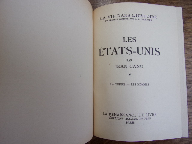 Art Deco Binding. THE UNITED STATES, the earth, the men. Illustration notebook The description of this item has been automatically translated. If you have any questions, please feel free to contact us. The United States the earth, men Jean Canu Flight, in-8, pretty tape binding, golden head slice, Illustration notebook At the end of the volume, 190x140, very fresh, 350pp Edition, Marcel Daubin, 1947 Ref/153 The United States the earth, men Jean Canu Flight, in-8, pretty tape binding, golden head slice, Illustration notebook At the end of the volume, 190x140, very fresh, 350pp Edition, Marcel Daubin, 1947 Ref/153 Recommended products Provided by Art Deco Binding. André Maurois. Lélia or the Life of Georges Sand View item Binding "Art Deco". THIS TIME SO SHORT... (Melancholy of childhood). Ex. Japan View item Bibliophile Binding Pierson. Henri Lavedan. The New Game. 1895 View item Binding. General Thoumas. Around the tricolor flag. 1789-1889 View item André Maurois. Ariel Or La Vie Shelley + L. A.S.Pretty Binding Art Déco. Eo View item Binding. THE KING OF THE MOUNTAINS Edmond About drawings by Charles Delort 1888 View item Binding. Alfred de Bréhat. The Adventures of Charlot. Drawings by Philipoteaux View item Origin. Edmond Perrier. The Earth before history View item Reliure Cuir Langue Français Époque XIXème Sujet Histoire