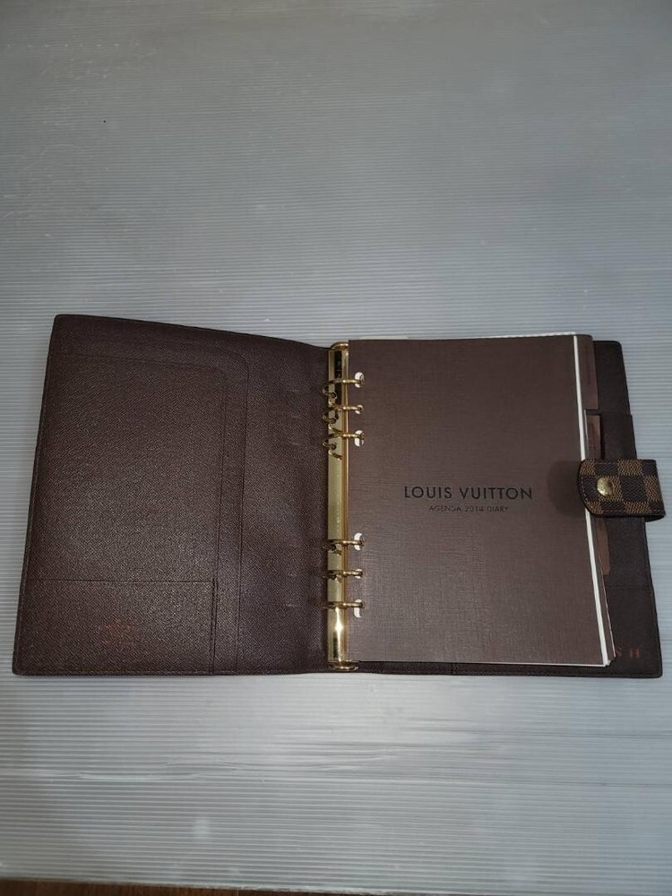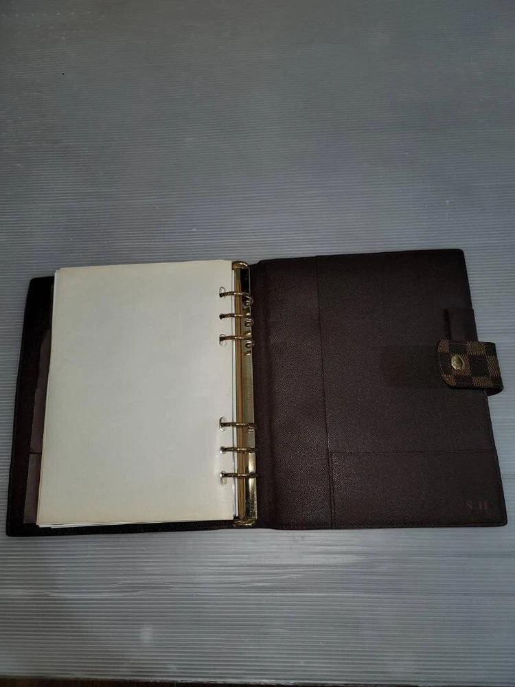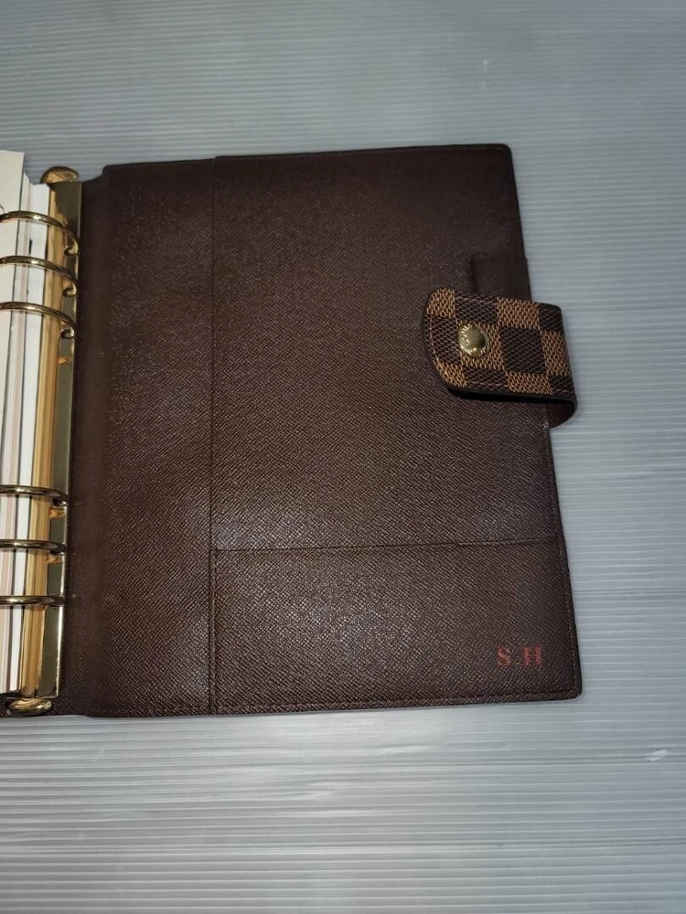 This Louis Vuitton Damier Agenda GM cover is a stylish and practical choice! The brown PVC canvas and leather give it a luxurious feel, and though it shows some wear like scratches and scuffs, it adds character. The engraved initials make it unique. Shipping is fast and reliable—perfect for staying organized in style. Love it!