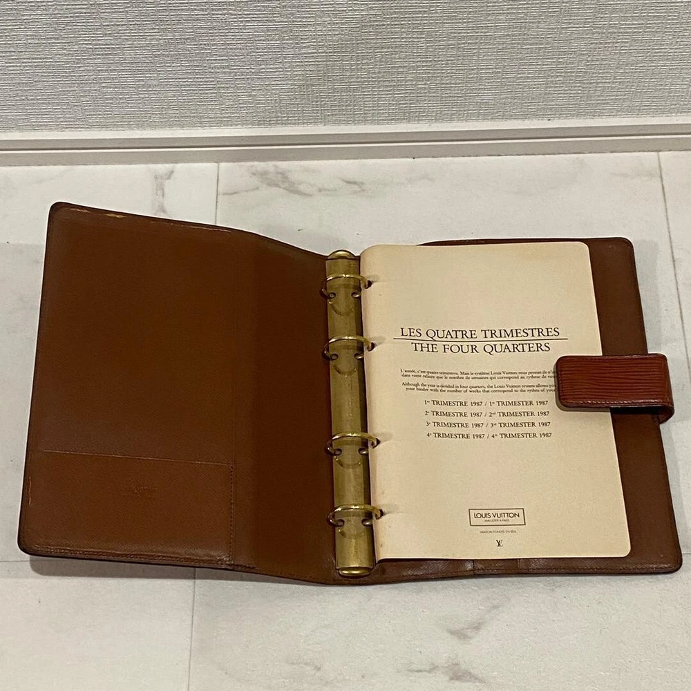 Authentic Louis Vuitton Agenda GM Epi Notebook Cover Vintage Brown Leather MI874 Description Louis Vuitton Agenda GM Epi Notebook Cover Serial number: MI874 *Product manufactured in April 1987 Color: Brown Material: Leather Opening and closing: Snap button Accessories: None This product shows signs of use overall. This is an old product. There is a large tear in the inner pocket. This product also has other scuffs and scratches. Please refer to the photos for the condition of the product. Please understand that this is a used item before purchasing. *The actual color may differ from the image depending on the shooting environment and the monitor you are using. Thank you for your understanding. Approximate guide (There may be some differences.) Shipping We ship with basically fast FedEx. However, some items cannot be delivered by FedEx. At that time, we may use DHL, EMS, or international parcels. We will ship the item 1~5 business days after your payment clears. To our customers Thank you very much for your bidding and shopping! Goods are expensive and you may hesitate to purchase them even more it is second hand and from abroad. Therefore, we will make sincere efforts to give customers a sense of reassurance with providing highest standard of customer service.If you have any question, please feel free to contact us.We hope you would be happy with our items and service.Thank you very much. International Buyers - Please Note: International Buyers - Please Note: Import duties, taxes, and charges are not included in the item price or shipping cost. These charges are the buyer's responsibility. Please check with your country's customs office to determine what these additional costs will be prior to bidding or buying.