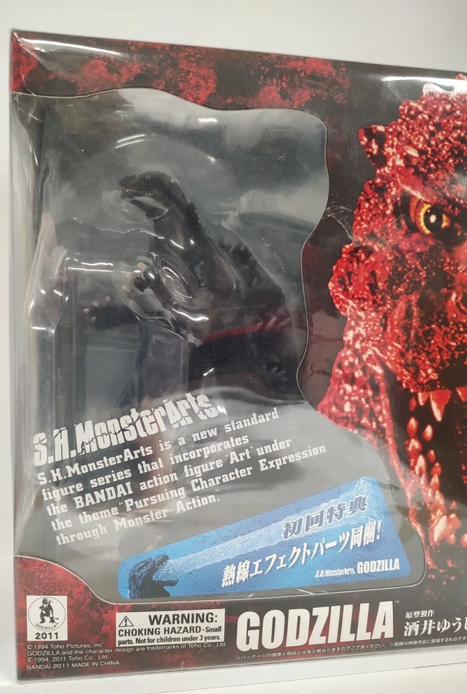 BANDAI TAMASII GODZILLA YUJI SAKAI 2011 GODZILLA WITH HEAT RAY S.H.MONSTER ARTS ACTION FIGURE Description: NEW This listing is for one (1) BANDAI S.H. MONSTER ARTS 2011 GODZILLA HEAT RAY YUJI SAKAI ACTION FIGURE . Item is factory new; never displayed. Figure will ship in secure package. ABOUT THIS FIGURE Imported from Japan! A revolutionary new kaiju action figure series will destroy stores with S.H.MonsterArts ! The S.H.MonsterArts series is based on the sculpts rendered by the renowned Yuji Sakai and feature unprecedented detail! Godzilla stands 6 1/8" tall and features 29 points of articulation allowing for a never-before-realized range of movement - including a swimming pose! And each figure features unprecedented levels of detail and coloring - from the pupils of Godzilla's eyes to his back plates. Constructed from ABS, PVC and POM materials for enhanced detail. Be sure to check our ebay store for more items. PAYMENT Payment by paypal must be made at the time of purchase. California residents pay local sales tax. SHIPPING Combined shipping available for items purchased within 1 days of first purchase. Payment must be made with a single payment. US Buyers : PO Boxes, AK, HI, PR, and APO/FPO addresses must use USPS mail. International Buyers If paying for multiple items, do not pay until you have received a shipping quote. Item will be shipped via Priority or Express mail. Buyer is responsible for any import/export duties imposed on international shipments 1A,1BXSTR 07/20/24 WS (BETWEEN STOVE / SLIDING DR)