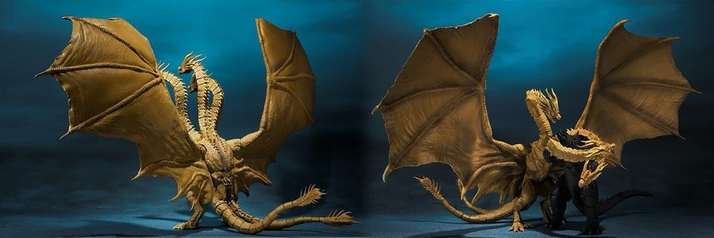 From Tamashii Nations. The fearsome King Ghidorah, as seen in the 2019 film Godzilla: King of the Monsters joins the S.H.MonsterArts series! It's sculpted and finished with all of the care you've come to expect from Bandai, featuring effect parts that let you replicate dramatic scenes from the film. Based on the same 3D data used in the film, and overseen by the legendary sculptor Shinichi Wakasa, it features accurate proportions, details, and coloration. The set includes King Ghidora figure and display stand.