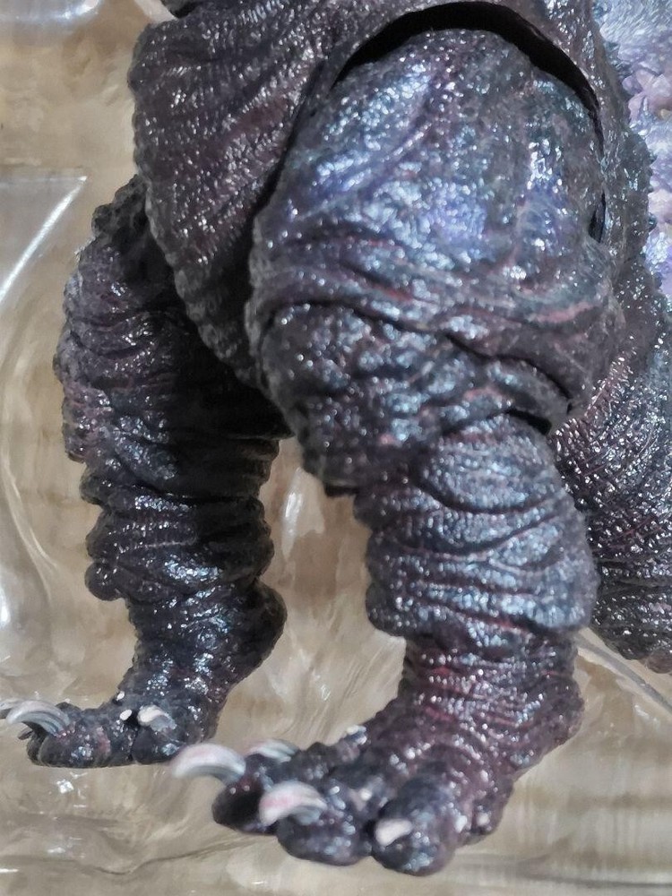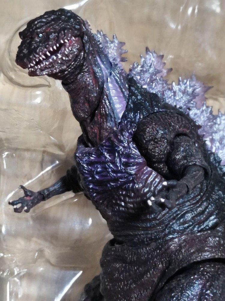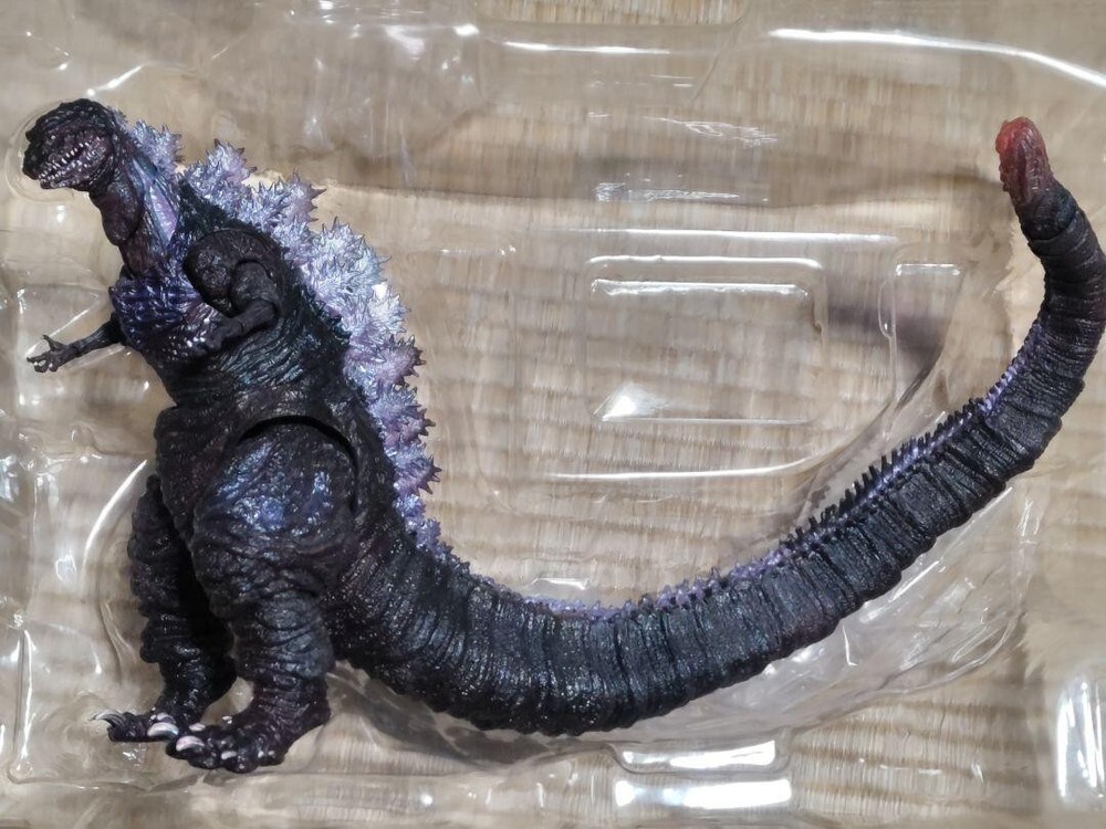 This SH MonsterArts Shin Godzilla figure is an awesome display piece—highly detailed and in great condition overall! The paint and sculpt look fantastic, and all accessories are included. The tail and jaw joints are slightly loose, but it still poses well. The Tamashii Stage has some scratches, and the box shows minor wear, but the figure itself is pristine. Perfect for any Godzilla fan’s collection!