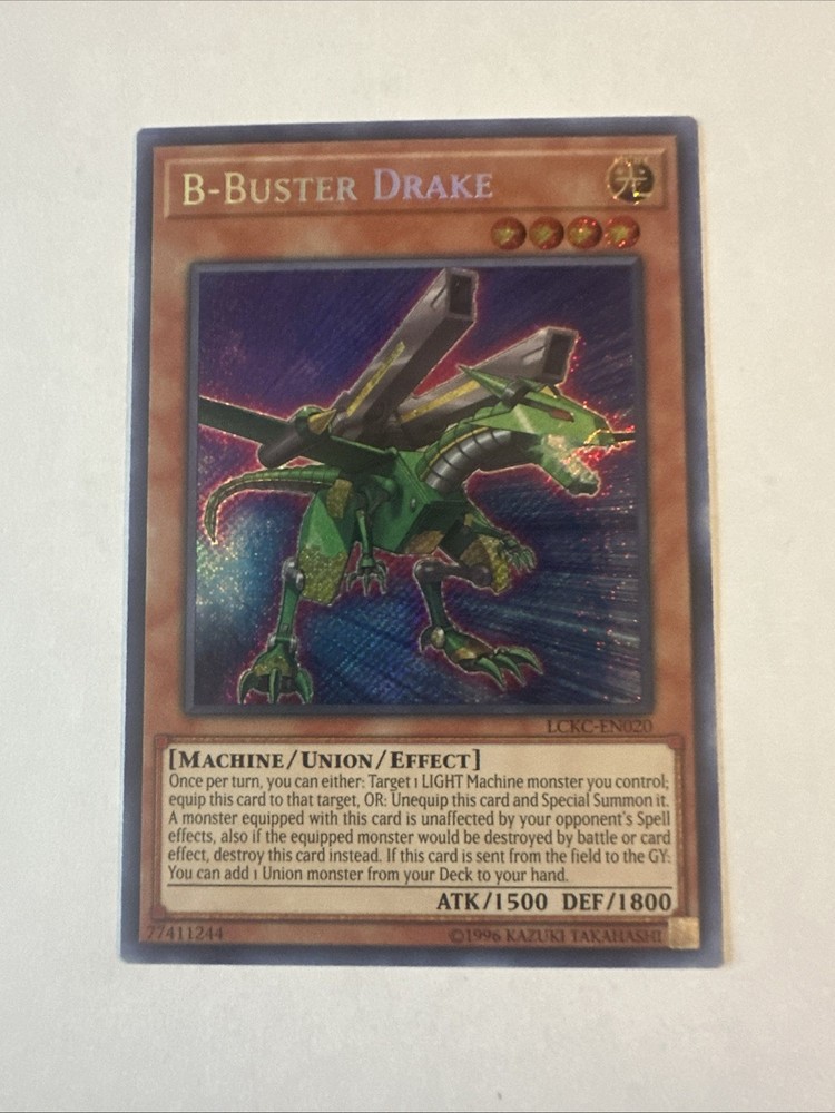 The B-Buster Drake LCKC-EN020 card is a highly sought-after Secret Rare collectible from the Legendary Collection Kaiba set in Yu-Gi-Oh! TCG. With an impressive defense of 1800 and an attack power of 1500, this English-language card features the iconic Machine type creature and belongs to the Effect and Union card types. Manufactured by Konami, this unlimited edition card is a valuable addition to any Yu-Gi-Oh! card collection. *Items ship Wednesdays/Thursdays*