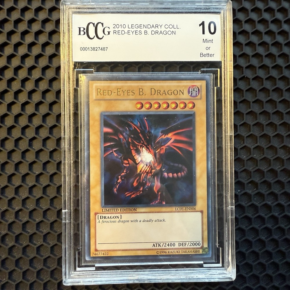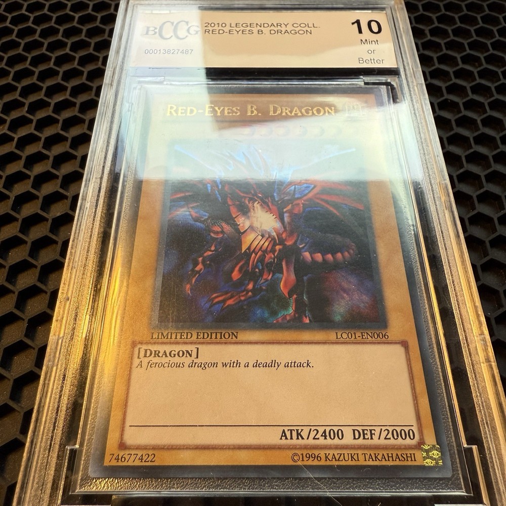 The BCCG 10 Red-Eyes B. Dragon LC01-EN006 Yu-Gi-Oh card is a highly sought-after collectible in the Yu-Gi-Oh TCG. This Ultra Rare card from the Yu-Gi-Oh Legendary Collection 1 features a Dark attribute Dragon with 2000 Defense and 2400 Attack power. Manufactured by Konami, this Limited Edition card is a must-have for any serious collector or player. With its limited availability and impressive stats, the Red-Eyes B. Dragon is a valuable addition to any Yu-Gi-Oh card collection.