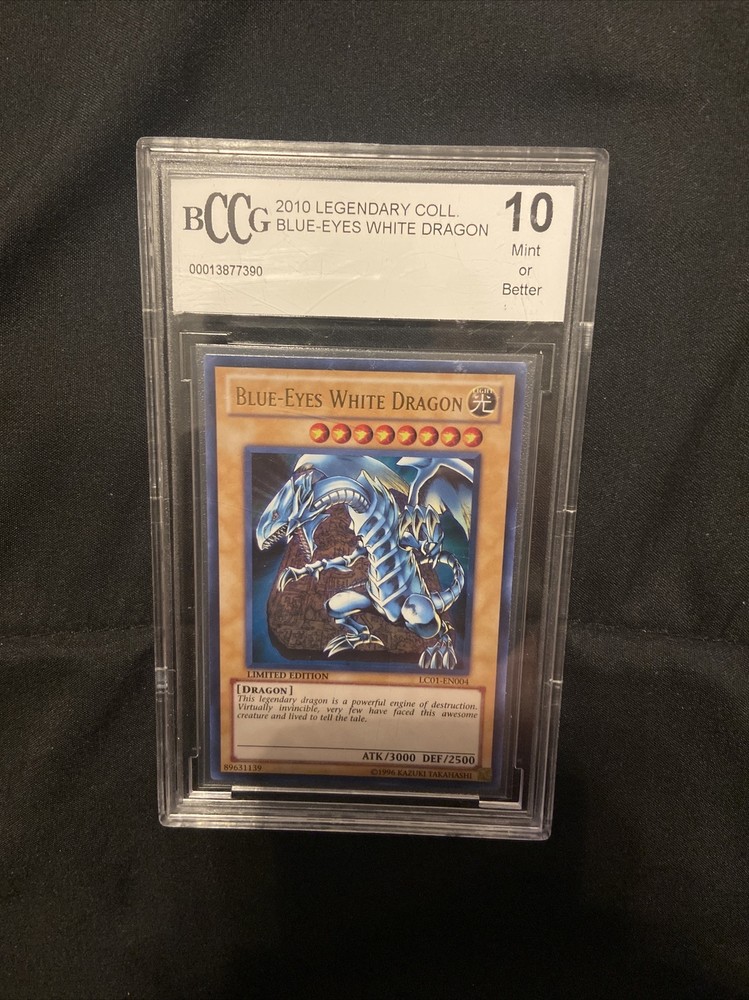 Blue Eyes White Dragon card from the 2010 Legendary Collection is a must-have for any serious Yu-Gi-Oh! TCG collector. With a BCCG Mint 10 rating. Don't miss out on the chance to add this beauty to your own collection.