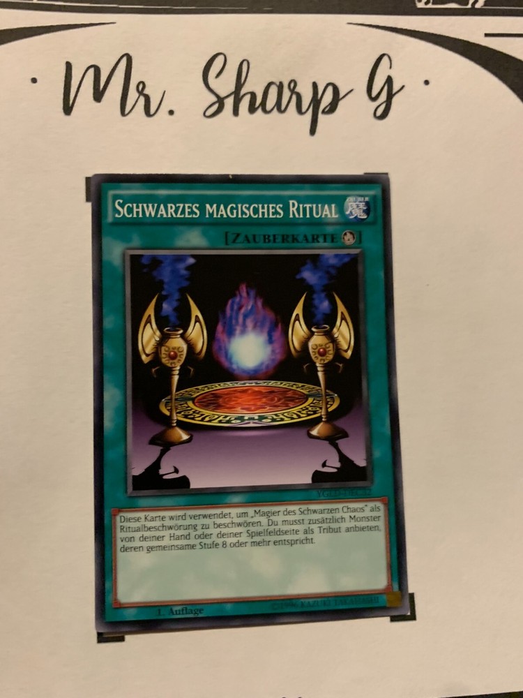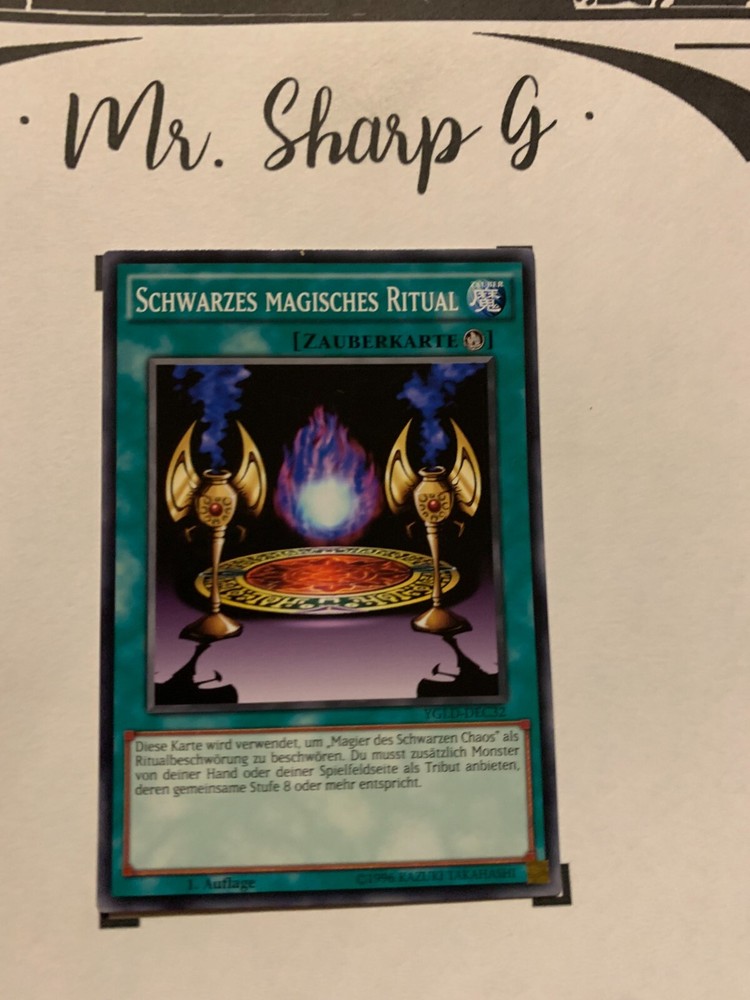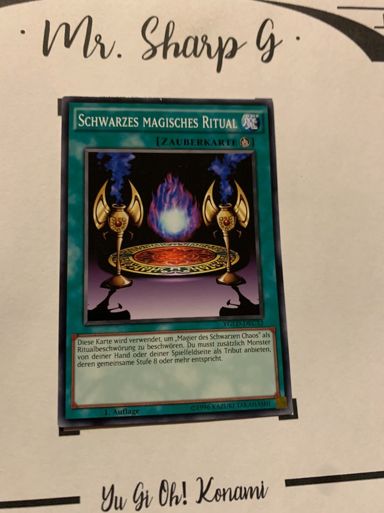 - Mr. Sharp G - - Online Store - TRADING CARDS-TCG-COLLECTION-SETS-TOURNAMENT-Yu Gi Oh! Konami * * * SCHWARZES MAGISCHES RITUAL - 1. AUFLAGE YGLD-DEC32 - Bitte schauen Sie sich die beigefügten Bilder an, um einen vollständigen Überblick über den Zustand jedes Artikels zu erhalten. - Zustand des Artikels: Neu* - in einem neuwertigem Zustand. (* Neuer Zustand - kann aber leichte Mängel wie 'whitening', leichte Eindrücke, Dellen u.a. haben - die von der Herstellung der Karte aus Produktion stammen, bitte den Bildern und in der Beschreibung den Zustand entgegennehmen) - Typ/ Serie: Zauberkarte / 1. AUFLAGE YGLD-DEC32 - Seltenheitsstufe/ Rarity: COMMON - Edition : YUGI'S LEGENDARY DECKS / 2015 / DEUTSCH * * * + Kartenschutzhülle & Toploader inklusiver im Preis + mehrfache Bestellung = einmalige Versandkosten + versicherter Versand Bestellung in Höhe - v. 8,50EUR in Deutschland/ Inland - v. 12,50EUR im Ausland/ International + Großbestellungen kostenloser Versand Inland und International - Bei Fragen, Details, nicht im Bestand gewünschte Karten/ Artikel oder Versandgutschriften schreiben Sie uns! Wir freuen uns auf Ihre Nachricht! - Vielen Dank für Ihr Vertrauen, Unterstützung und Besuch in unserem Store ! - Ihr Mr. Sharp G Team