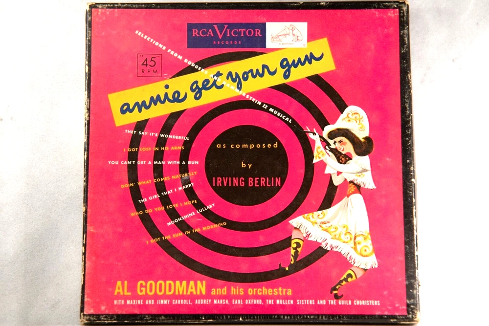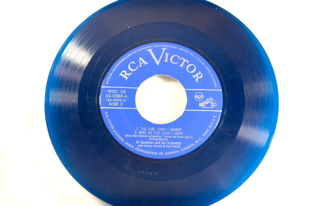 Rare BLUE WAX Set Annie Get Your Gun WDC 38 , RCA Victor, Original Sleeves And Box, 2 Record Set Original Record Sleeves And Box. Musical Including Music By Al Goodman, Maxine & Jimmy Carrol, Audrey Marsh, The Mullen Sisters And The Guild Choristers. Songs Including They Say It's Wonderful, I Got Lost In His Arms, You Can't Get A Man With A Gun, Doin What Comes Naturally, The Girl That I Marry, Who Do You Love I Hope, Moonshine Lullaby And I Got The Sun In This Morning Check Our Ebay Store Often! For A Growing Selection Of Vintage Collectibles, Antique Smalls, Estate Items And More Including Mechanical Pencils, Postcards, Victorian Trade Cards.... We Ship Within 24 Hours Of Cleared Payment, With Few Exceptions . Please contact us with any issues, questions or concerns.