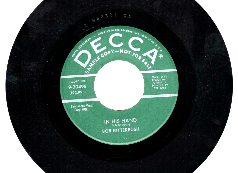 The Original Hits .. 45 R.P.M. Records .. Ships USPS: .. Delivery ConfIrmation, For Combined Shipping Use The Cart .. ALL RECORDS HAVE BEEN STORED IN SLEEVES, AS SHOWN, AND IN CONDITION AS LISTED... Professional Packing, We Ship In New Boxes Marked .. FRAGILE.. With Cardboard Packing.. Records Guaranteed to be as listed...And Offered At Low Saving Prices. See Photo Of Label For any Tags Or Writing On Label.. " STANDARD GRADE CODES.." M .. NEW .. M- .. CLOSE TO MINT.. VG+ .. CLEAN RECORD IN GREAT CONDITION .. VG .. RECORD SHOWS SOME WARE.. VG- .. RECORD HAS SOME SCRATCHES PLAYS OK.. G .. POOR CONDITION WILL PLAY.. All 45's are long out of print, and becoming more scarce every year. The records gain value, and now is the time to add to your collection ... Thank you for your interest in the oldies listings.. 100% Guarantee On All Records... This is a vinyl record by artist Bob Ritterbush, featuring the songs "Annie" and "In His Hands." It is a DJ copy in a 7" format with a speed of 45 RPM. The record was released in the 1950s on the Decca record label, making it a first pressing promotional edition with high-fidelity sound. This collectible single showcases Bob Ritterbush's pop music style from that era.