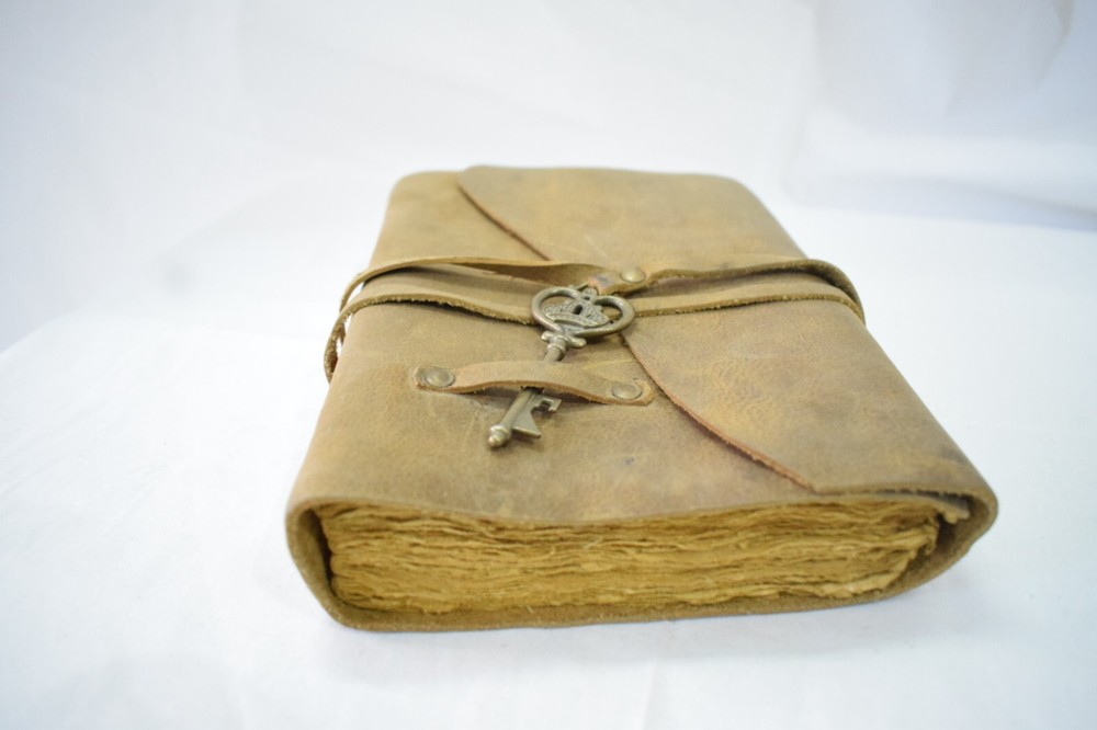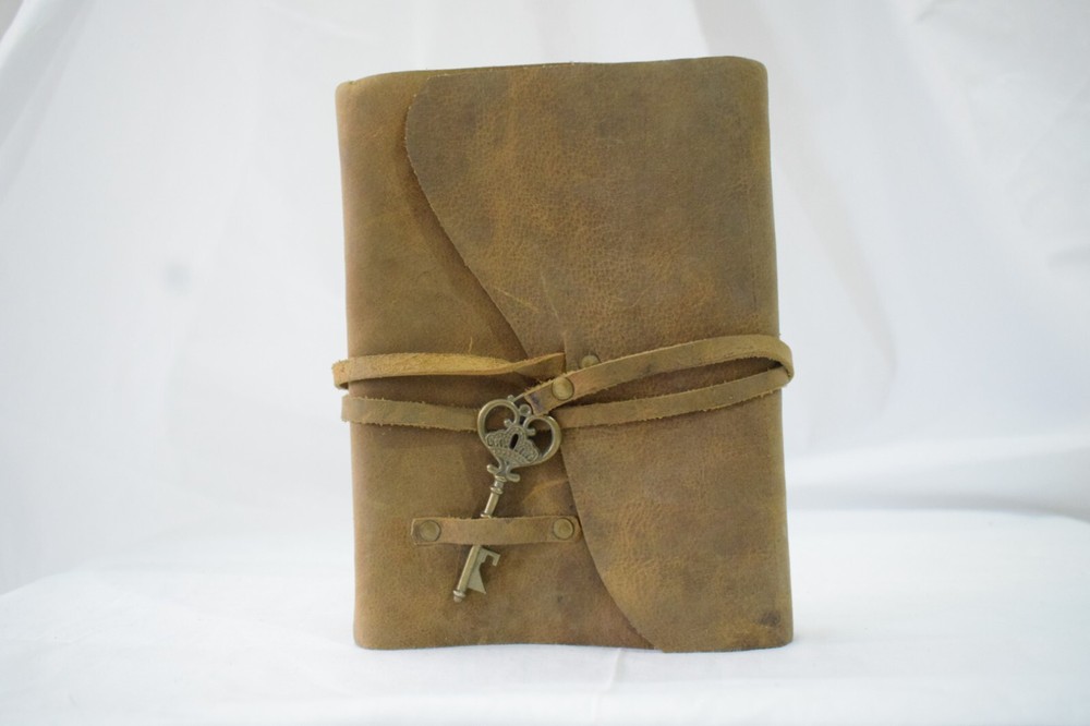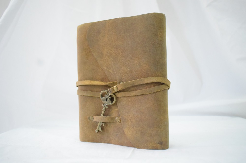 BUY ONE GET ONE Rustic Leather Journal with Brass Key Design: Brass Key attached to a leather thread to open and close Sizes : A5 - 8inch x 6inch Key Features: - Brass Key and Leather thread - 240 paper sheets of your choice [ 4 choices of paper] - Paper: 125gsm - Initials embossed on top in gold foil - Leakproof paper, so you can use any sort of pen/markers/watercolors.